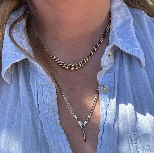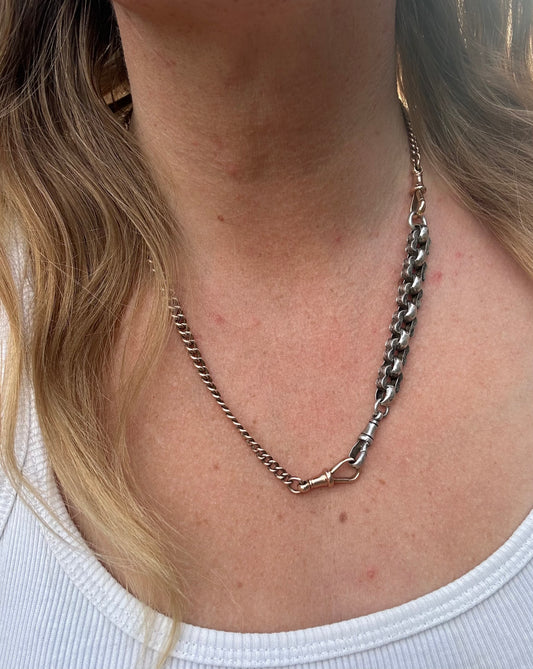 Vintage 9ct white and yellow gold double trombone and infinity link chain