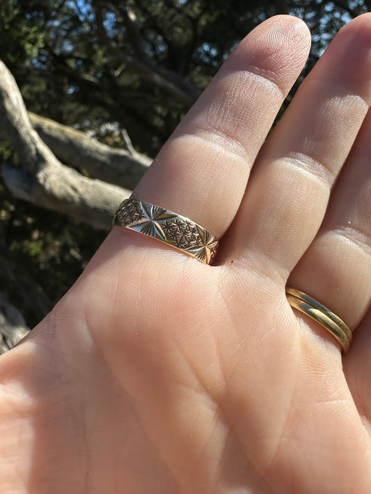 Sold outVintage 9ct Gold Star Patterned band