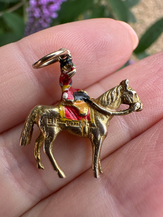 9ct gold & enamelled Royal Guard on a Horse Charm, solid, 3.11g