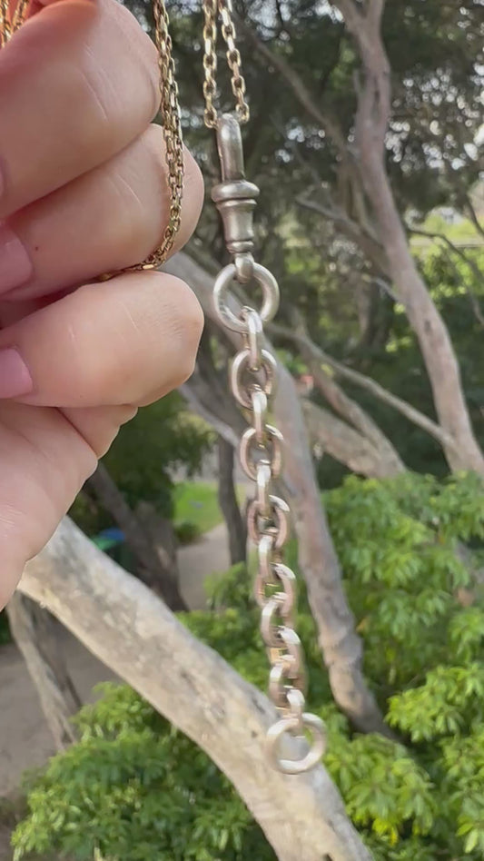 Antique 9ct Rose and White Gold Trombone and Lovers Knot chain