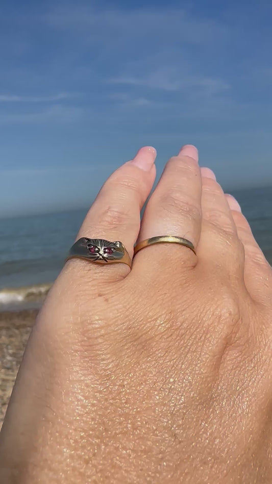 Vintage 9ct Onyx Signet Pinky Ring with engraved shoulders