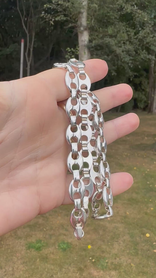 Vintage Sterling Silver paperclip bracelet with heart toggle
