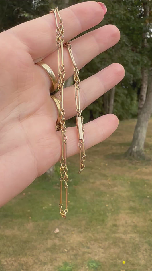 Antique 9ct yellow gold Bar and Cable link chain with bolt clasp.