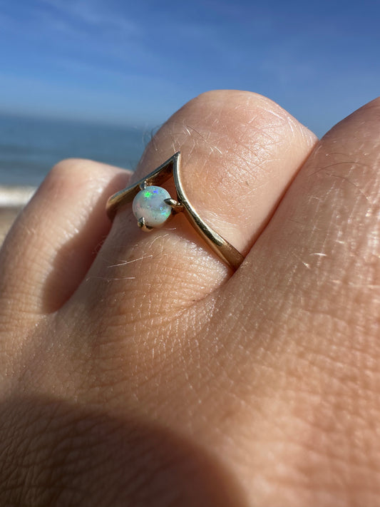 Vintage 9ct Gold Opal Wishbone Ring