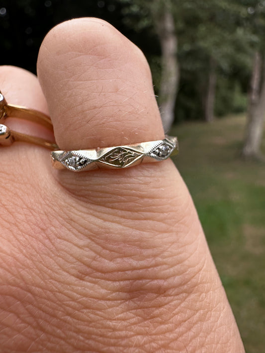 9ct two tone gold patterned ZigZag band with diamonds