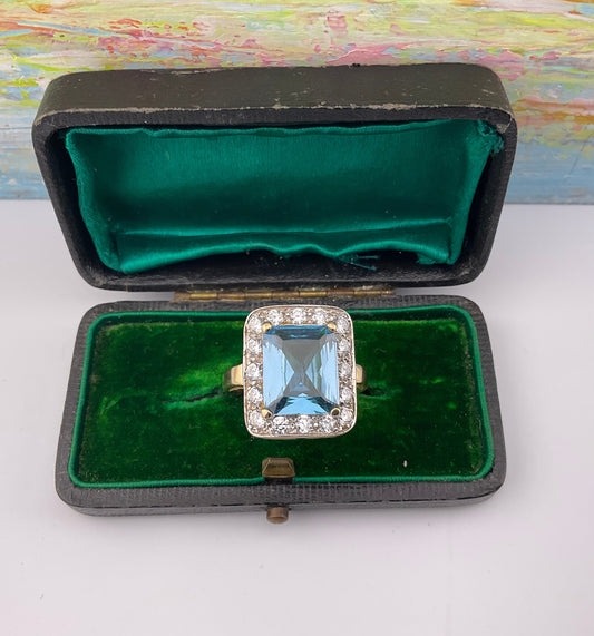 Vintage 9ct Gold Synthetic Spinel & CZ statement ring