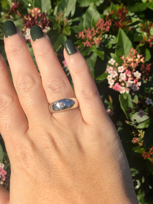 Silver 925 Domed Gypsy ring with Cubic Zirconias