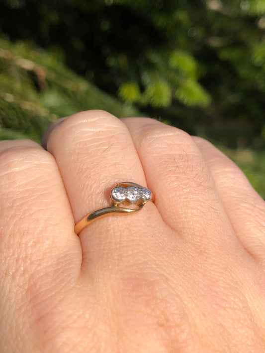 Vintage 18ct Gold Old Cut Diamond Trilogy ring