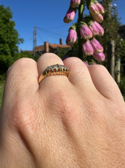 Antique 18ct Gold 5 Graduating Claw set ring