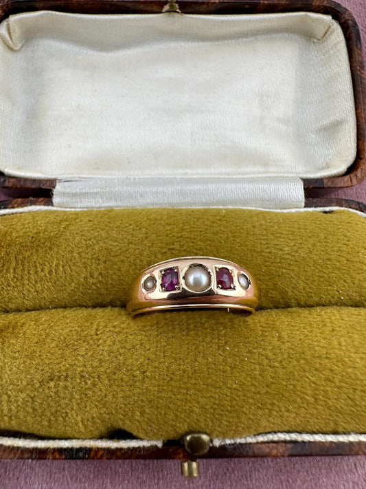Victorian 15ct pearl and ruby gypsy ring, 1890