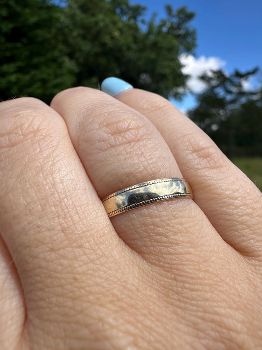 Milgrain edged 9ct gold band, 3.5mm wide