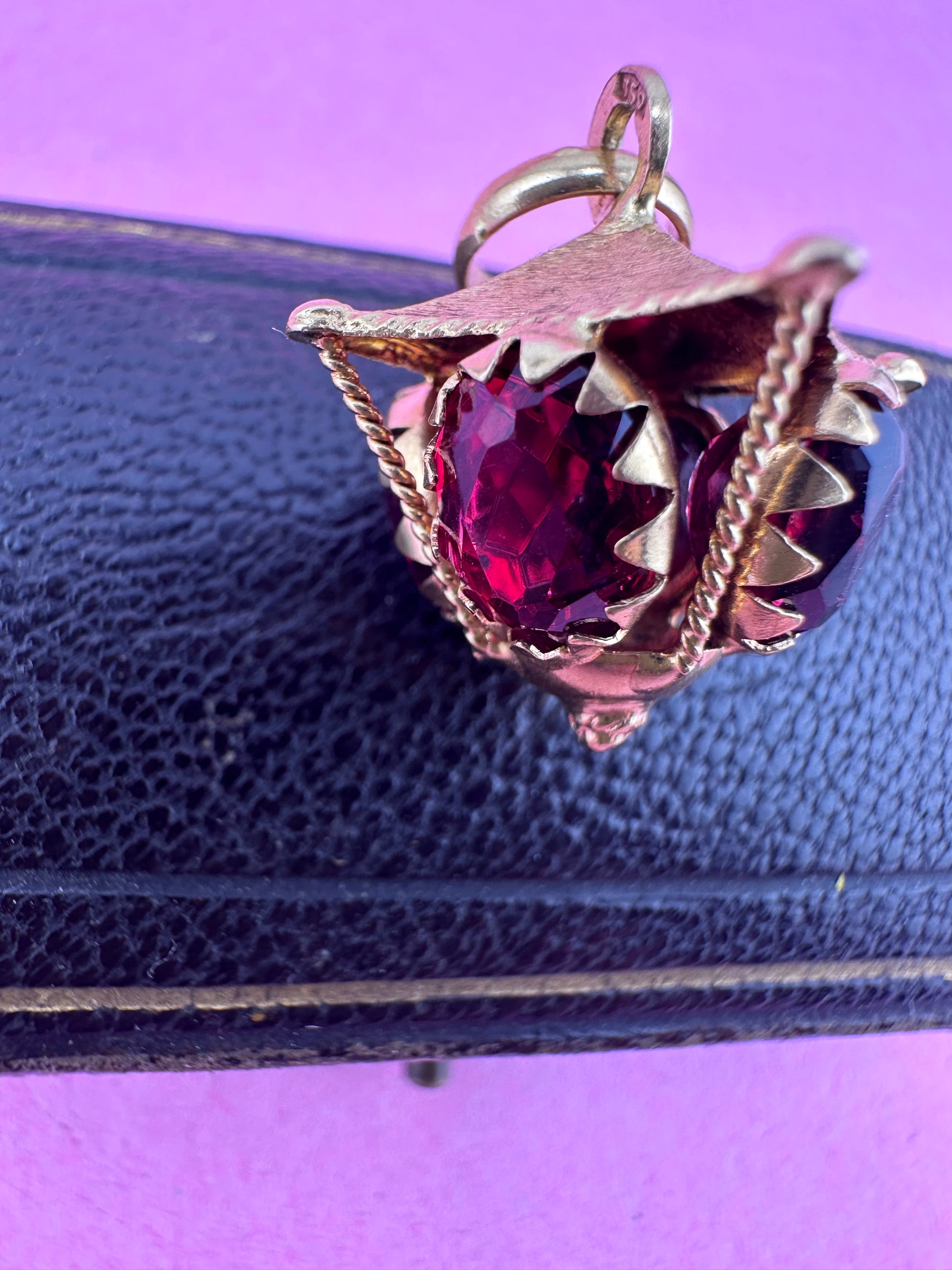 This is one of my favourite finds of late. I adore the shape, the buttery yellow gold & those Garnets are the best berry colour! The top of the lantern has some lovely textured florentine detailing which always makes a piece feel luxe. The way this looks on is stunning.