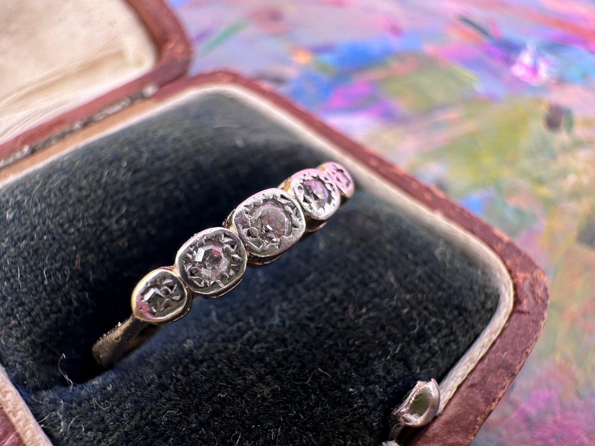 Thos ring is ins good condition, as with anything antique there maybe signs of wear. It has been cleaned and polished.