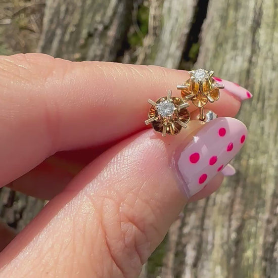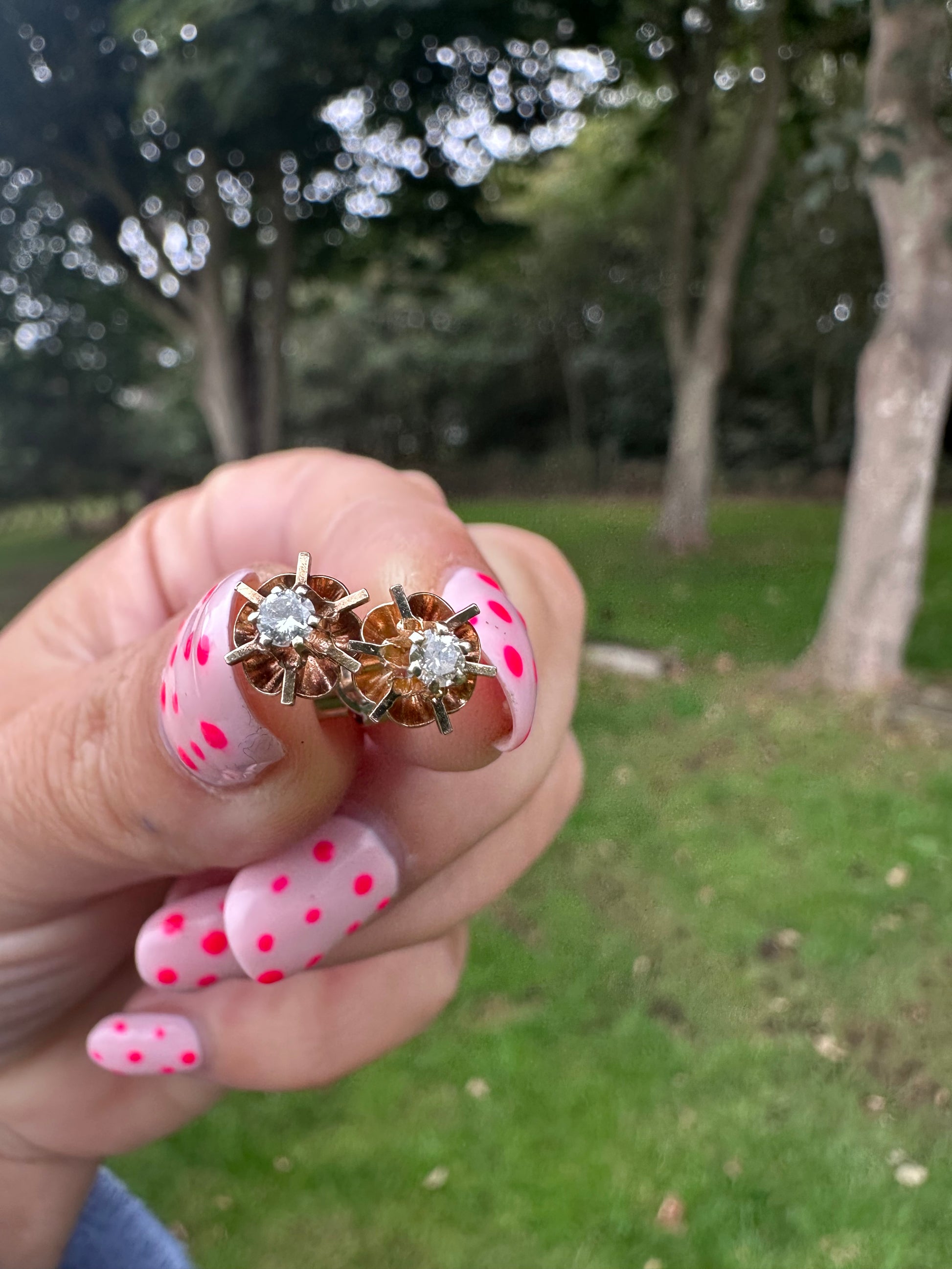 These studs are in good condition, the colour of the gold is slightly different with one being more bright yellow and the other being slightly darker. They have been cleared and polished.