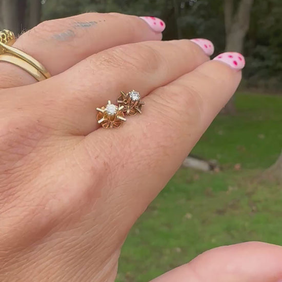Classically beautiful studs. These lovely diamond earrings are perfect everyday wearers. Add them in your ear stack to add a bit of sparkle. The buttercup setting is always a fabulous look.