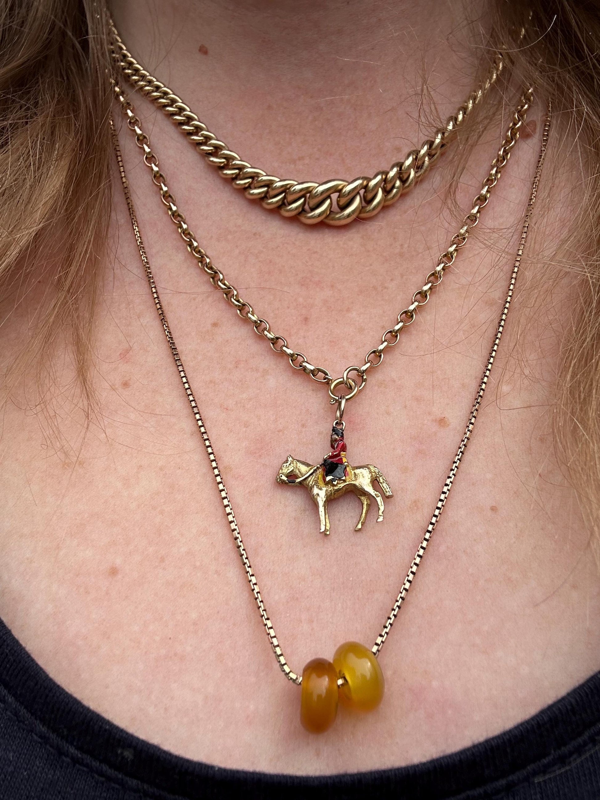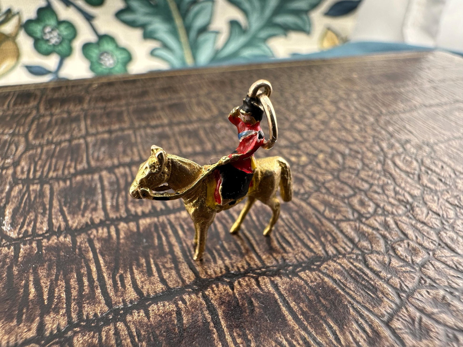 9ct gold & enamelled Royal Guard on a Horse Charm, solid, 3.11g