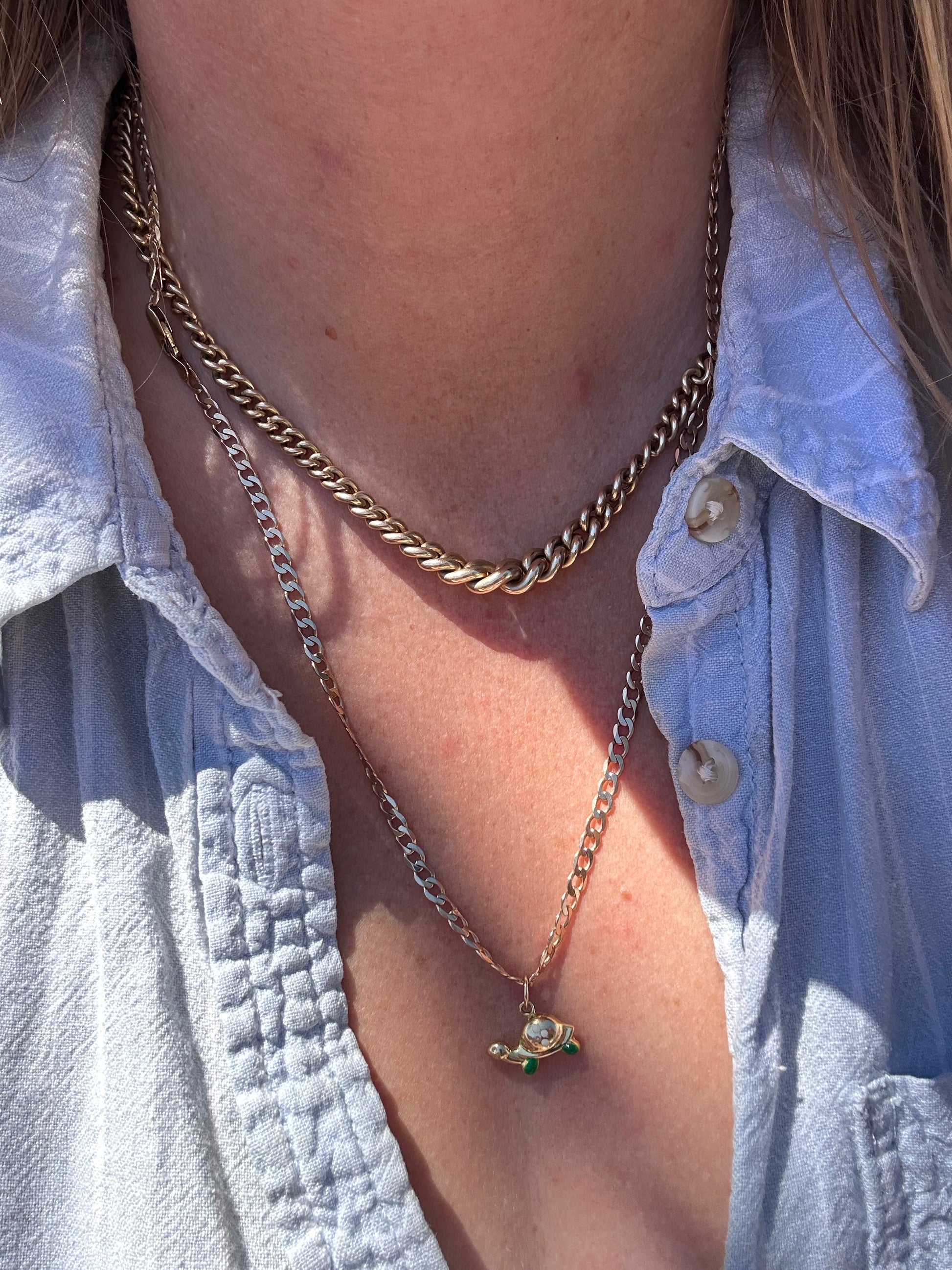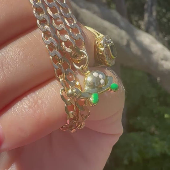 Cutie! How sweet is this little guy. I love how he has a cute puffy shell, a sweet little face and I adore the detailing in enamel. If you’re looking to add a little bit of colour and cuteness to your stack this little charm is perfect for you. It’ll look so good added to a neck stack or charm bracelet.