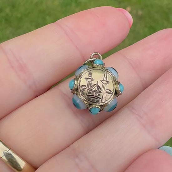9ct Gold Evil eye charm with turquoise. Engraved with Turkish mosque.