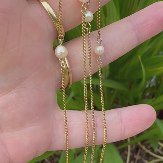 I always love a station chain in a neck stack, they are always so pretty. This one is made from a lovely 9ct yellow gold curb chain with pearls that graduate in size and creamy grey in colour with lovely lustre.