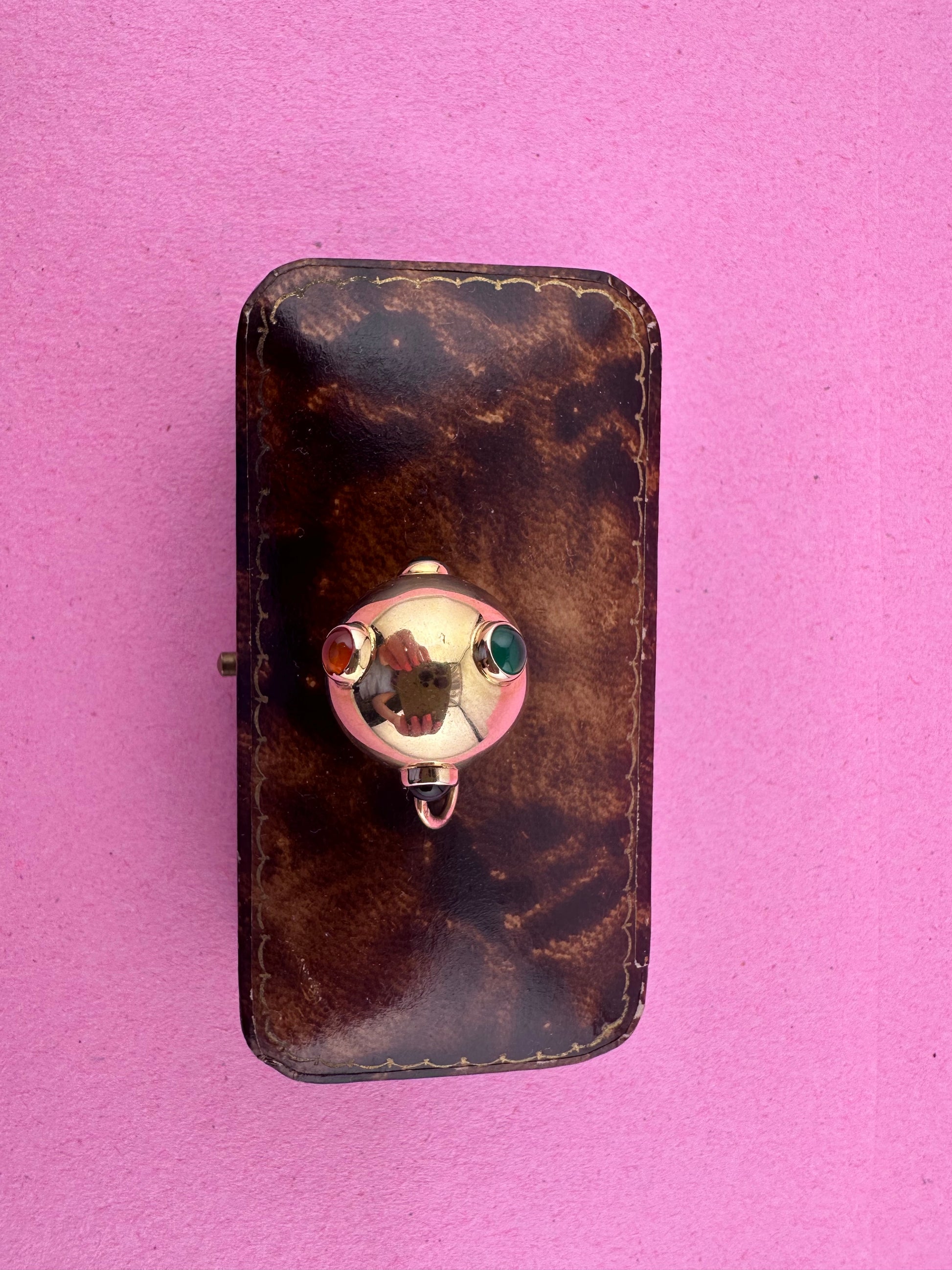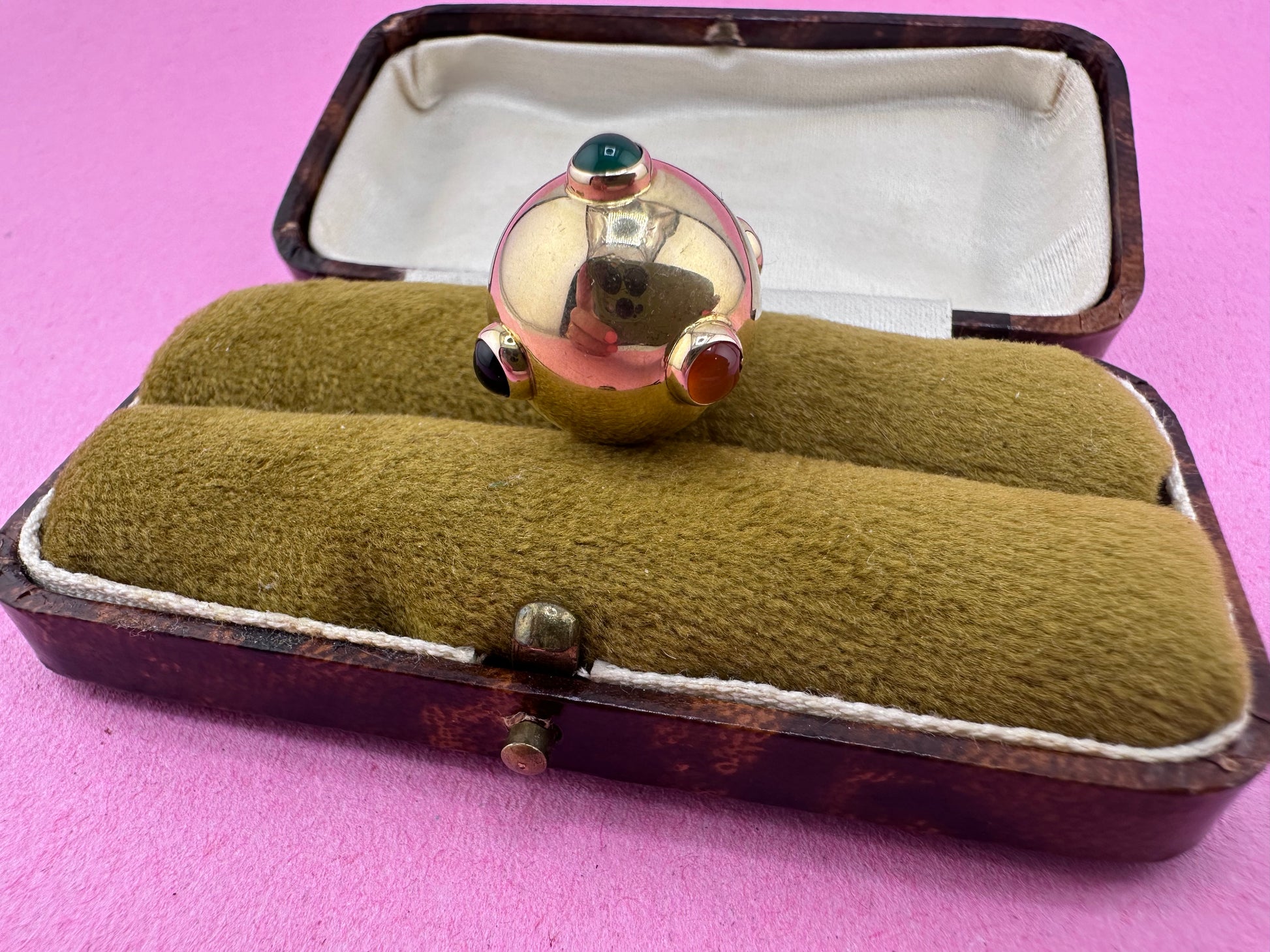9ct Gold Sputnik with carnelian, onyx & green agate gemstones
