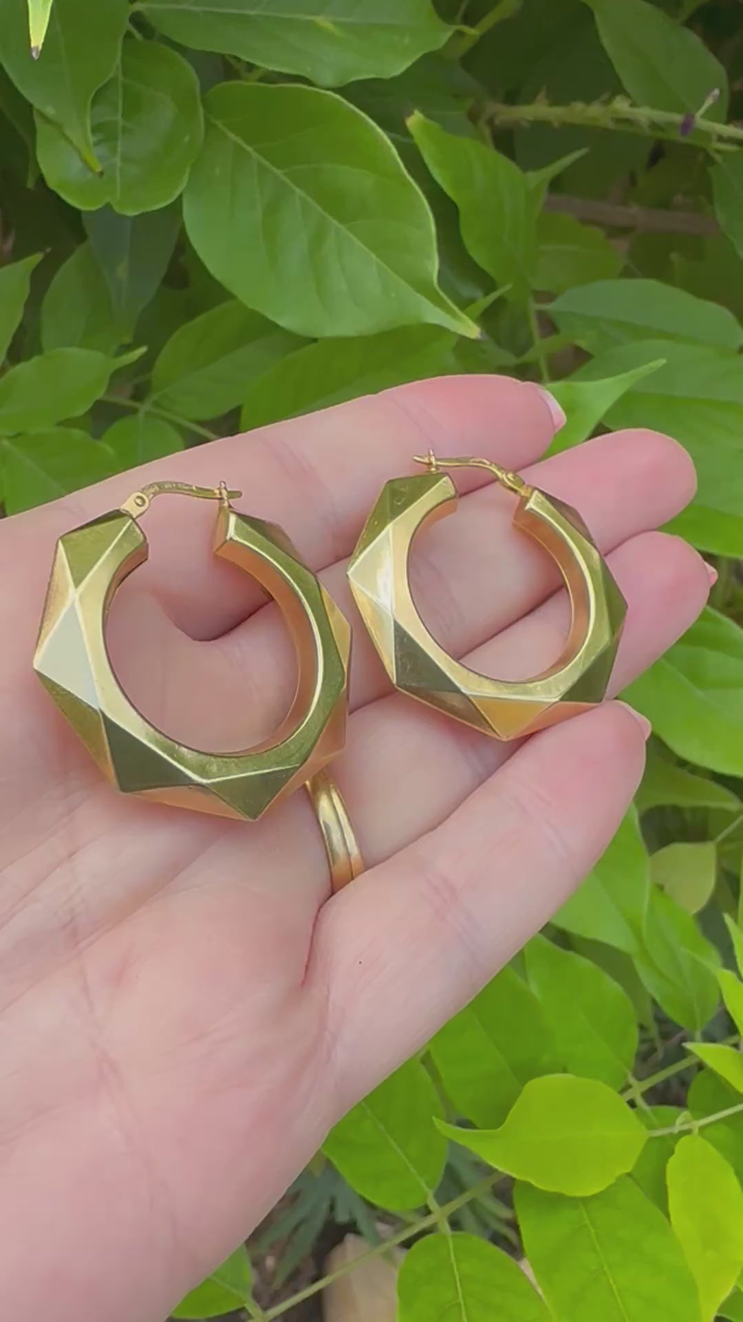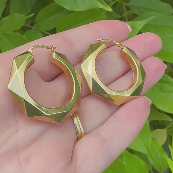 9ct Gold UnoAerre Octagonal Geometric Large Hoops