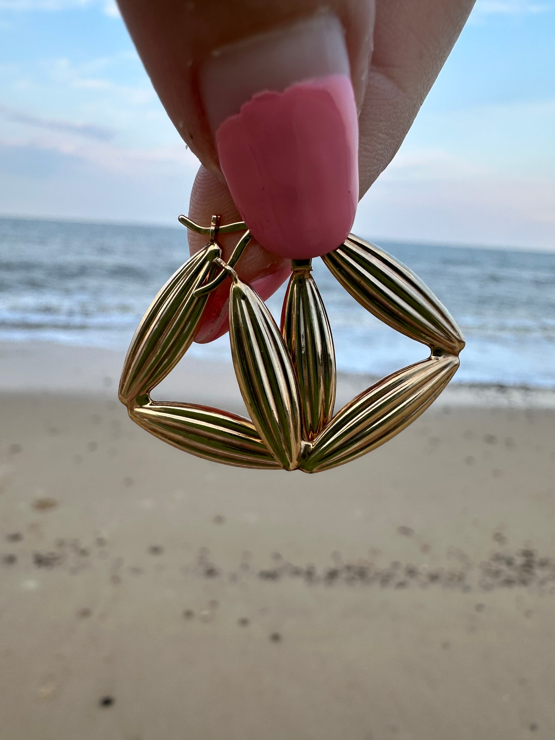 Fun Hoop! Never seen hoops quite like this before, they are such a fun shape similar to handbag hoops but they are a little more triangular than that. I love the ribbed texture too.