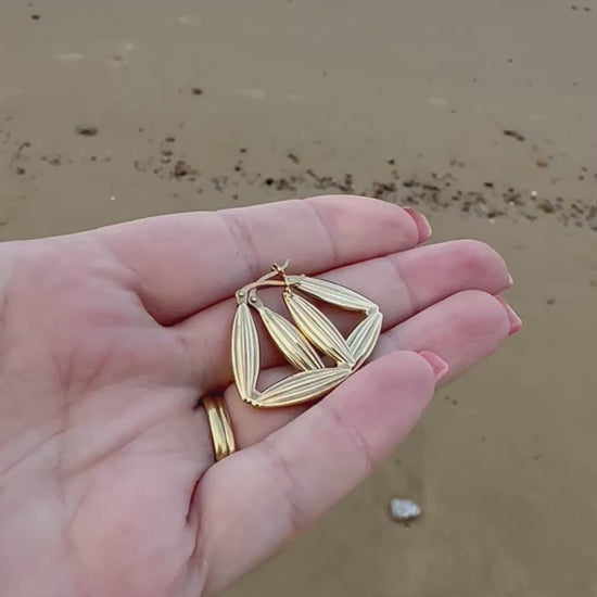 9ct Gold UnoAerre Ribbed Triangular hoops