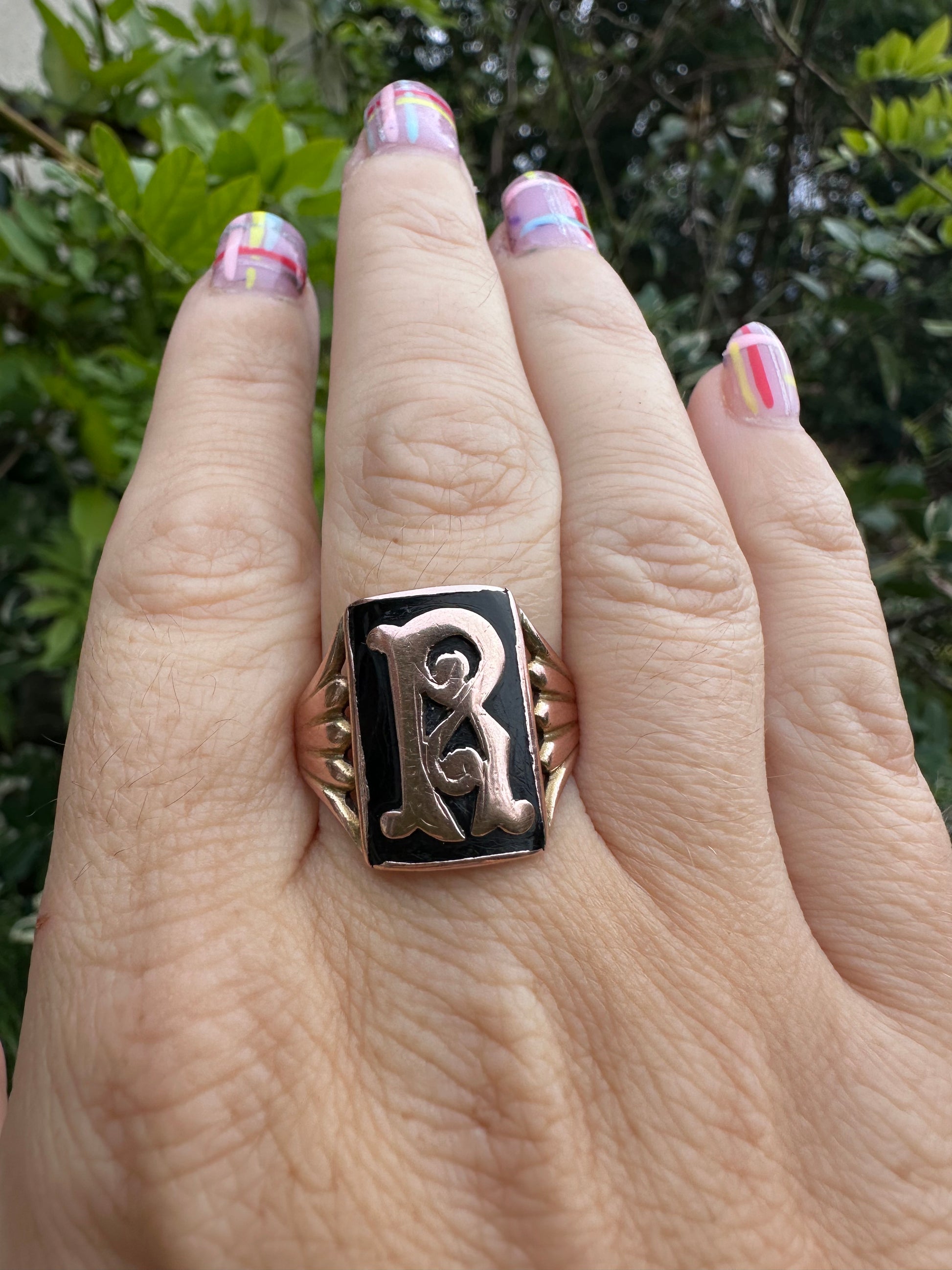 I adore these Onyx initial rings. This one is a big beauty and gives so much finger coverage she’s a true statement piece. Initial rings have been popular throughout history signifying ourselves, or during the Victorian era they had them as part of their mourning jewellery and more recently we’ve been enjoying having them to represent our loved ones from children to pets. They are the ultimate way to personalise your vintage and antique jewellery collection. I personally have a B (for becks) and i wear mine all the time, I love it.