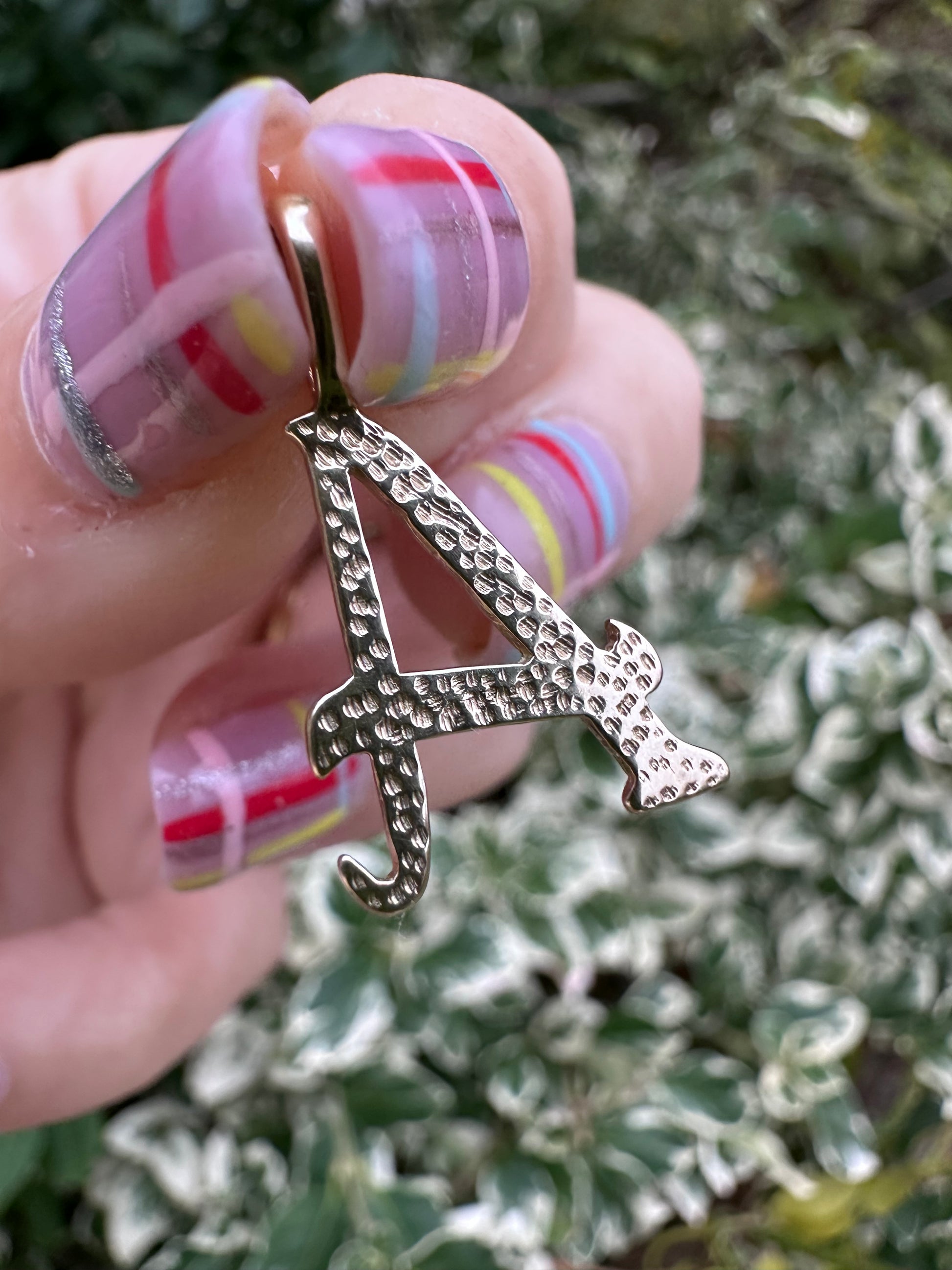 Adding initials to your jewellery collection is the ultimate way of personalising your looks. Add initials of yourself, your loved ones or pets. Initials throughout history has always been popular for this exact reason. This one is a lovely Italic font letter A. It’s a great Goldilocks size, not too small or large and has good sized bale.