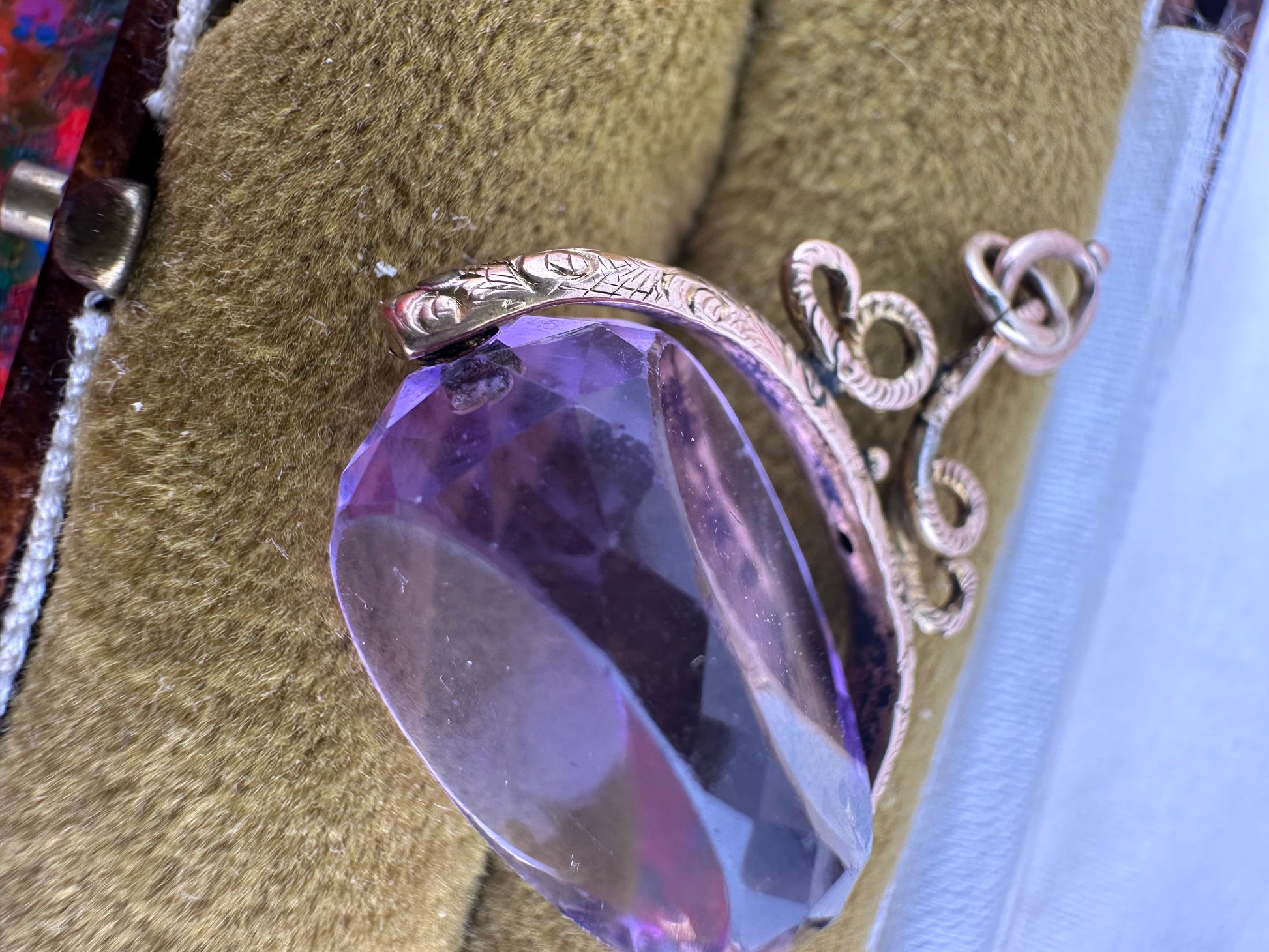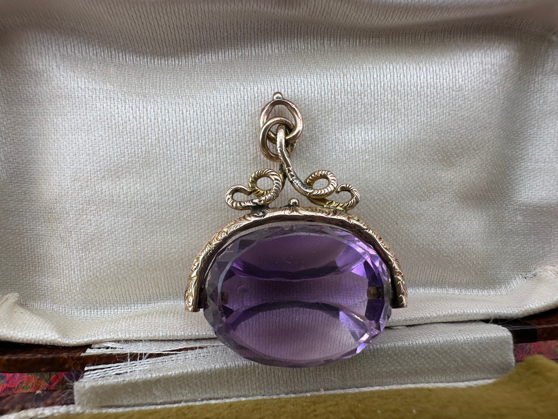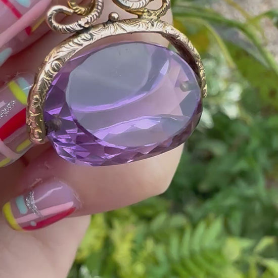 Lilac dream. This amethyst fob is a beautiful shade of lilac and is stunning. The chased work to the mount is just astounding and just looks insanely good, which just adds so much detail to your neck stack. A fob is an amazing way to add a bit of antique Albert style to your jewellery collection, even Taylor swift is wearing them.