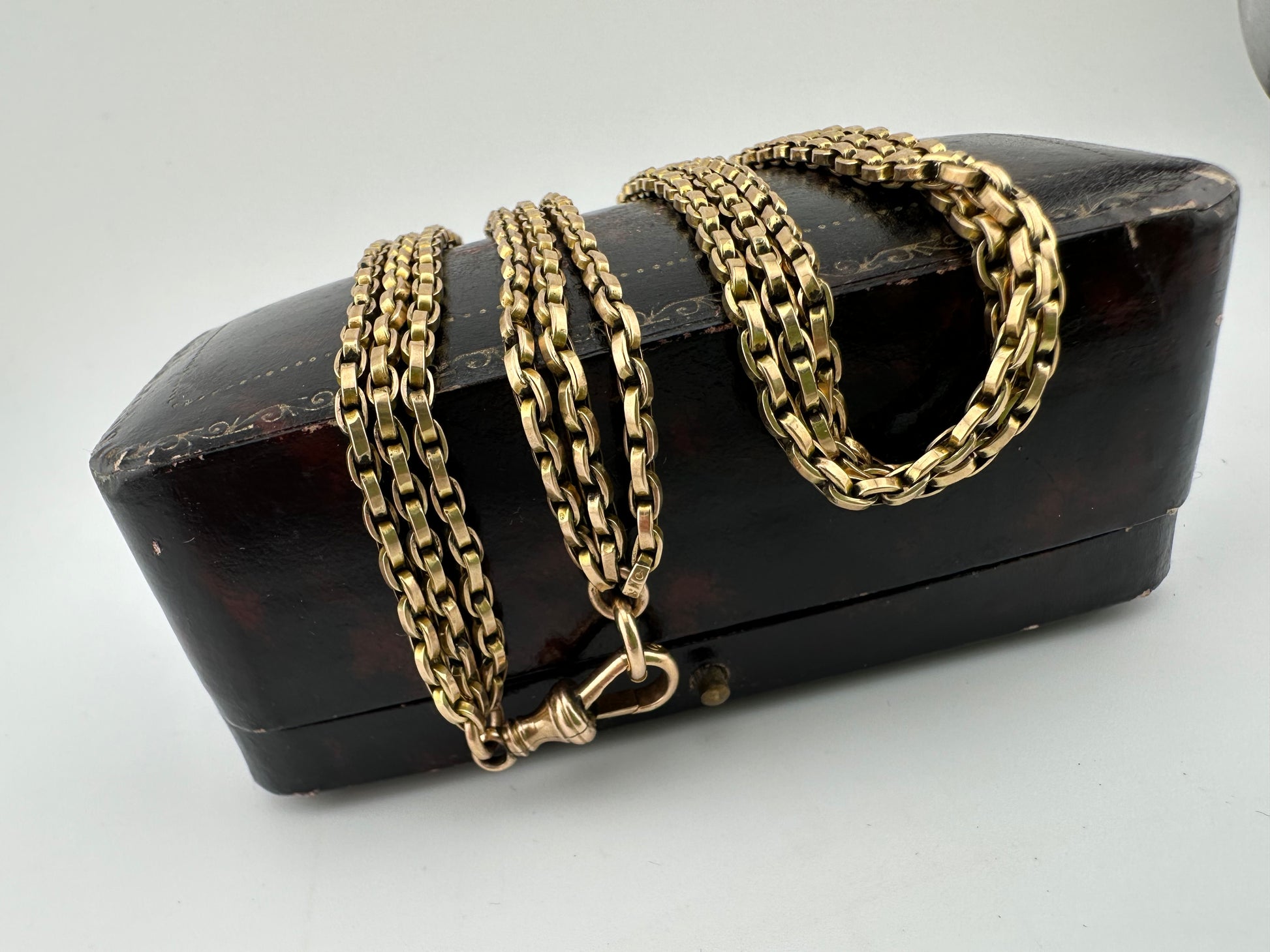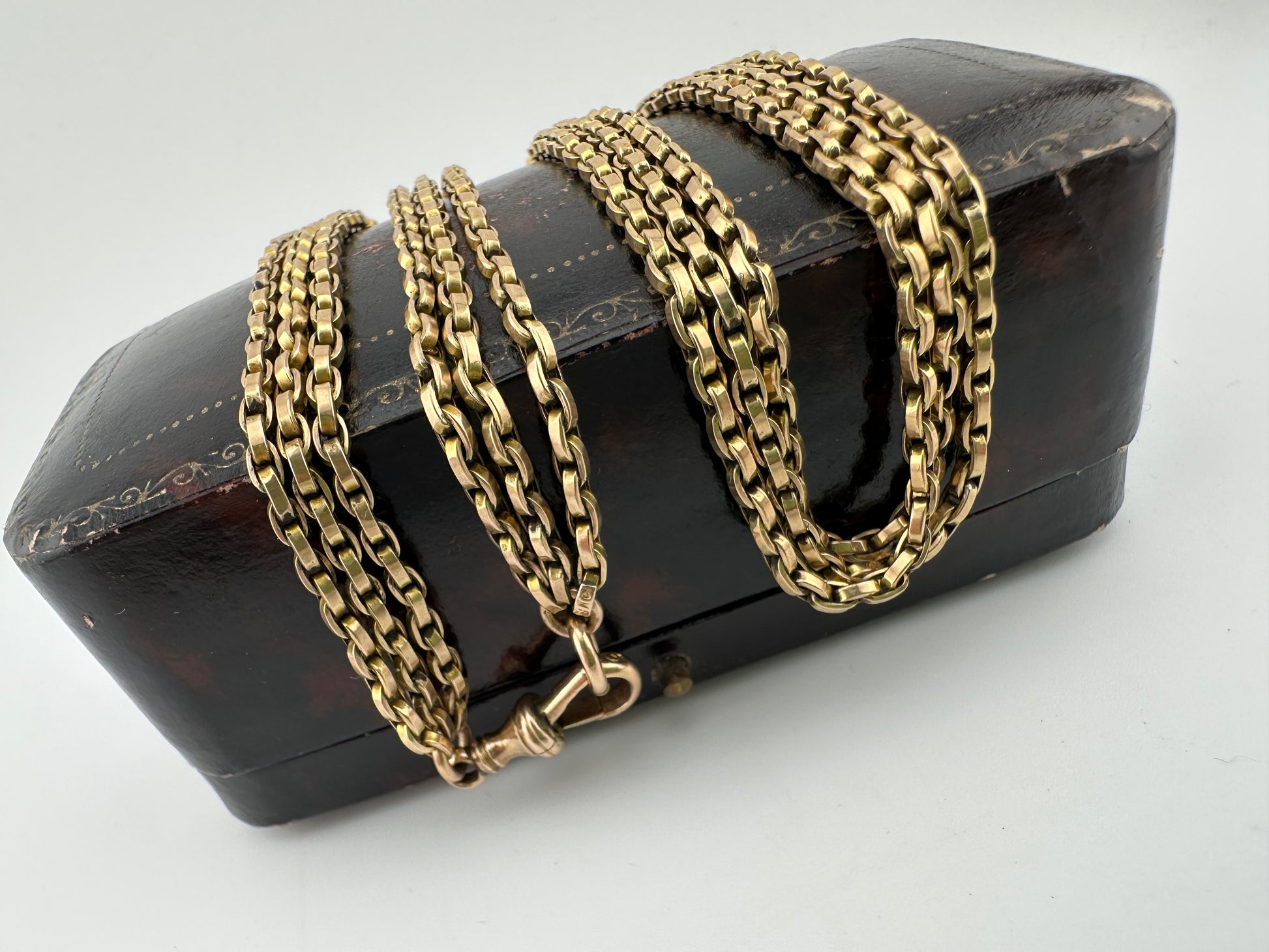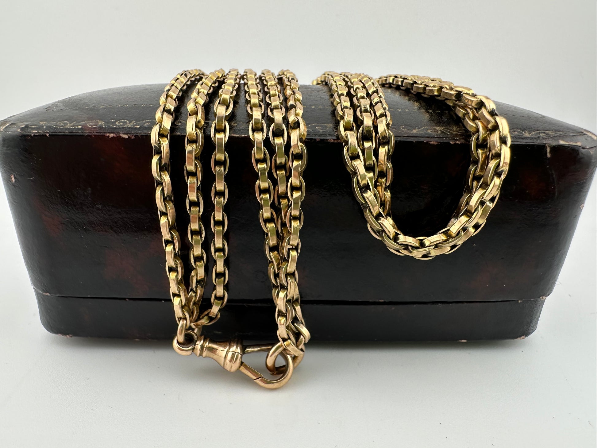 Antique 9ct Gold Triple Flat edged belcher chain with dog clip