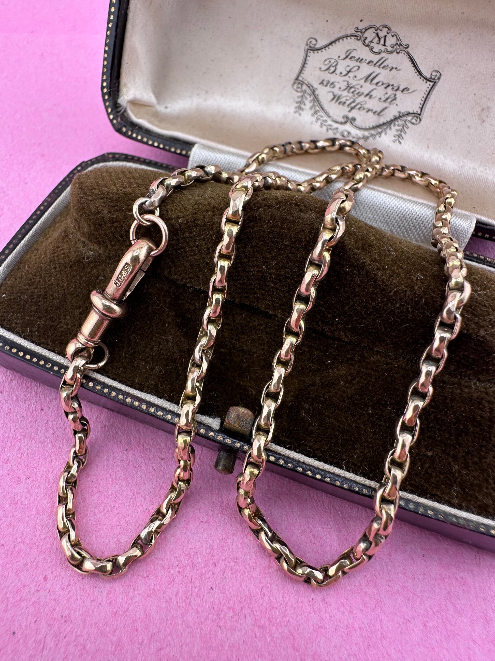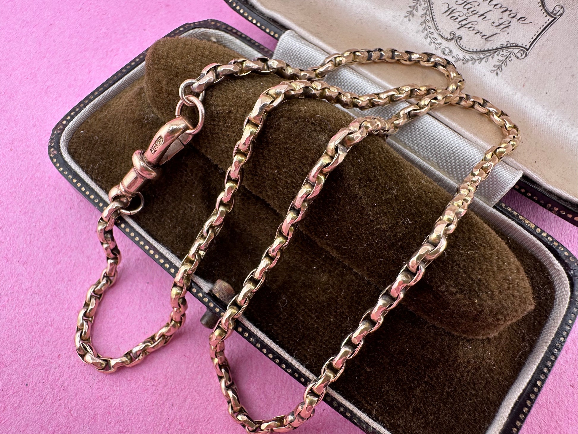 Antique 9ct Peachy Gold Faceted Oval Belcher chain