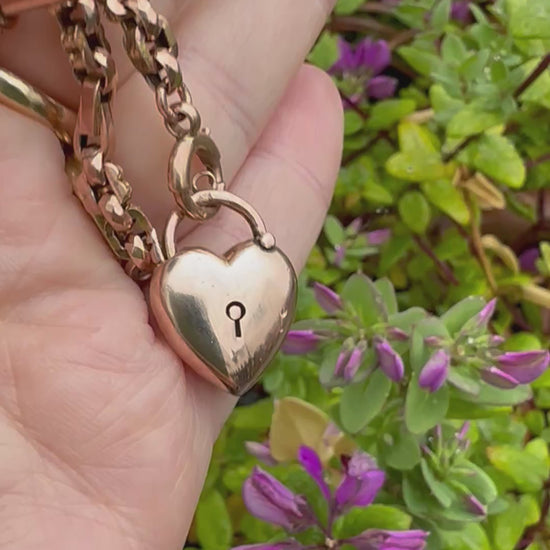 Antique 9ct Rose Gold Puffy heart padlock