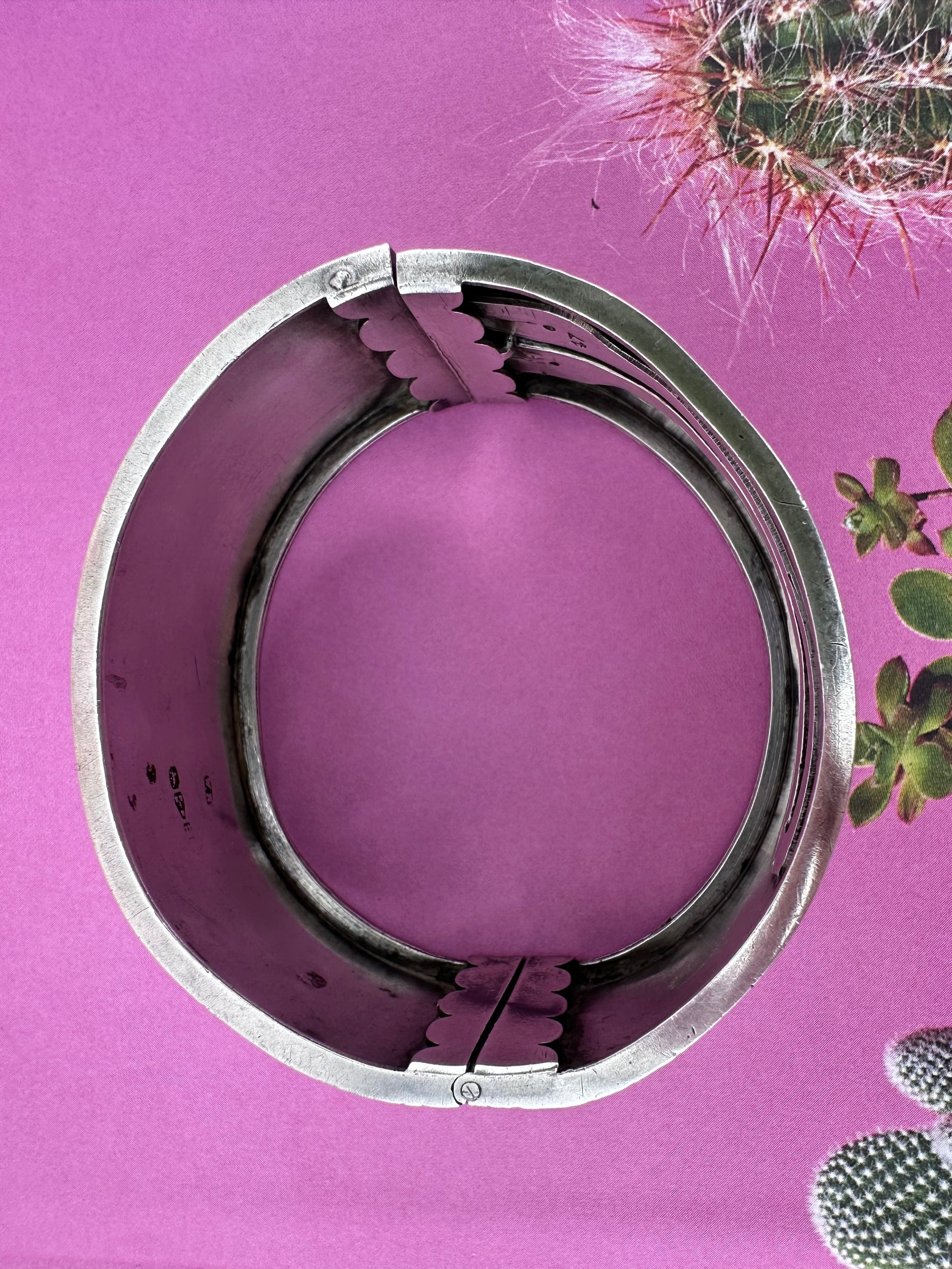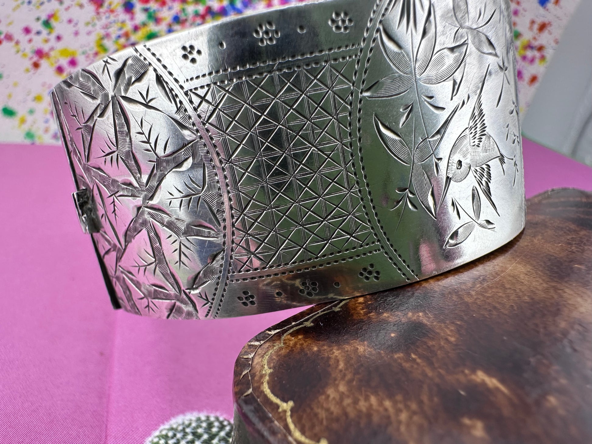 Antique Sterling silver Engraved hinged Cuff/Bangle