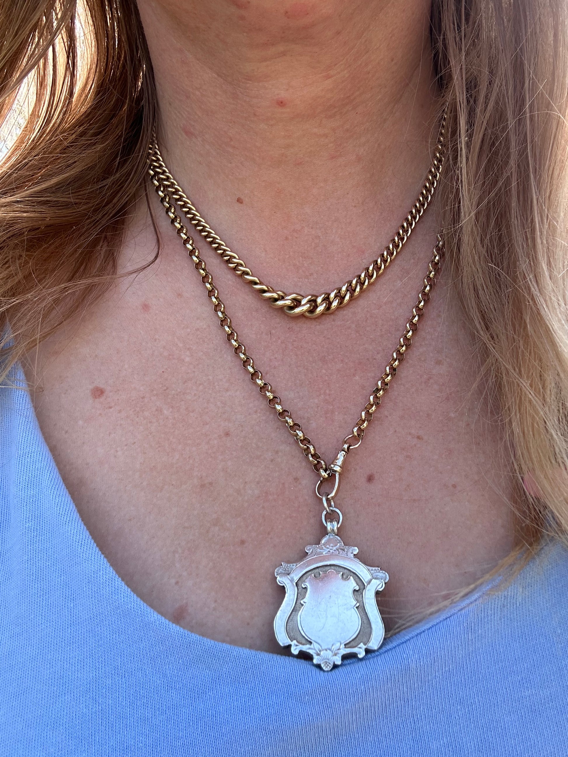 Silver shield fobs are always a great addition to your neck stack as they are large statement pieces. This one is a really heavy piece at over 15g and I adore this lovely shape with the floral detailing and the texturing to it too. The central shield is currently blank so could be engraved.