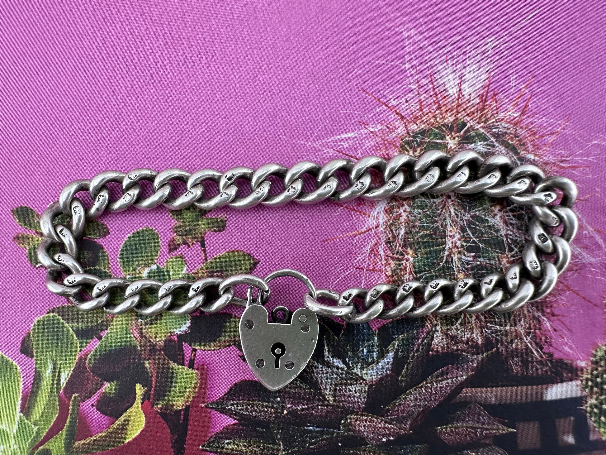 There’s something about this bracelet! This a truly lovely graduated curb bracelet. The links are meaty and chubby which is gorgeous, everything link is stamped with a lion which is always a sign of a well made piece. It has a nice vintage heart padlock clasp too which is such a classic look. But what makes this bracelet for me is the colour it has this almost satin colour and finish which feels so elevated I adore it!