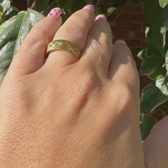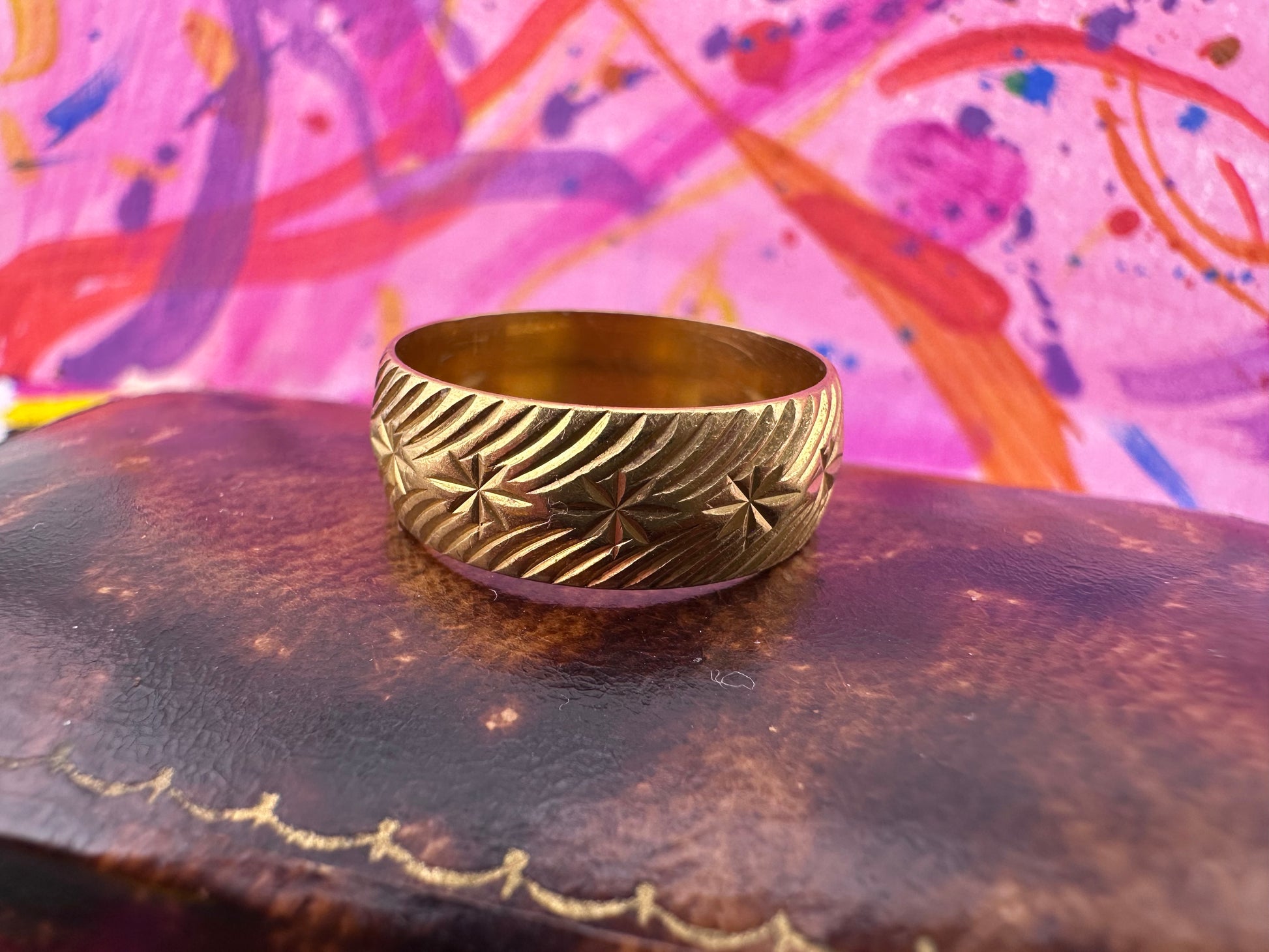 I cannot describe to you how much we love 22ct gold here at Osborne Jewellery, the glow is insanely good! Mid century jewellery is always fun and the celestial vibe is fabulous. The stripes and stars engraved on this band are stunning and catch the light giving you shine and sparkle to. It’ll look amazing in a stack or worn on its own.
