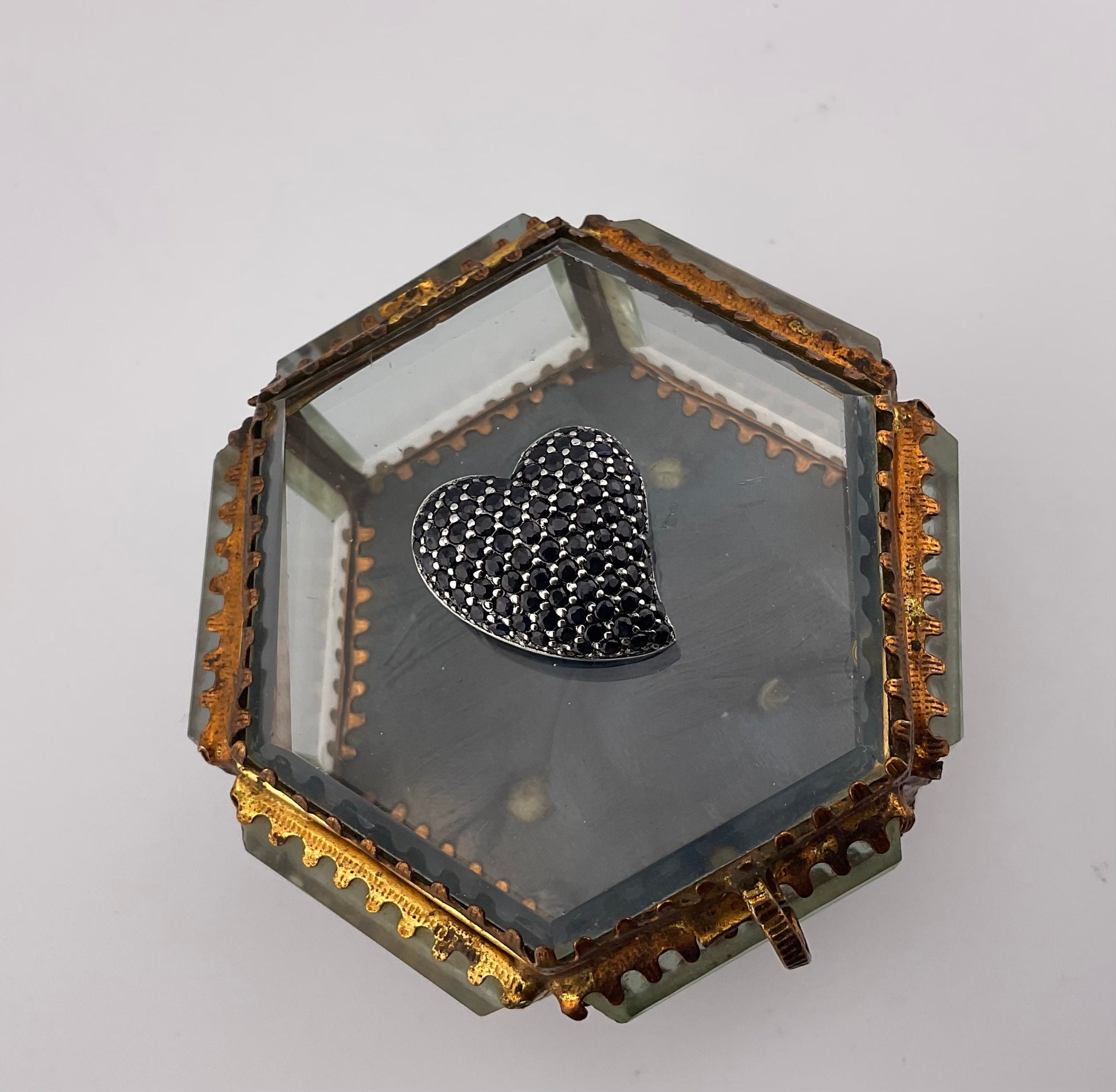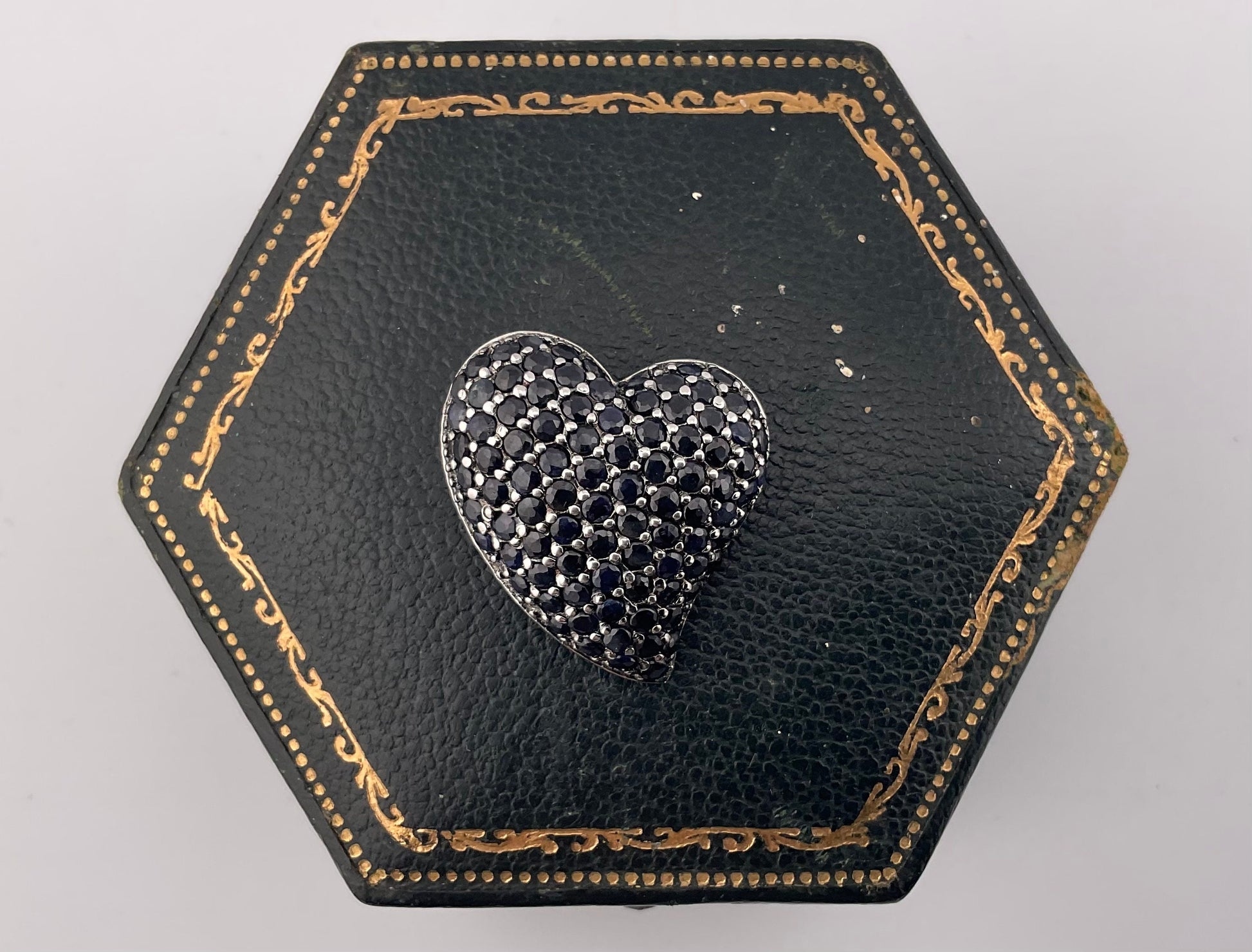 Stunning Silver Sapphire Heart. There are an amazing 93 Pavé set Sapphires in this lovely Silver Heart pendant. They really pick up the light and sparkle beautifully. There is a hidden bail that is set on one side so the heart sits at an angle when worn. It looks really fabulous on.