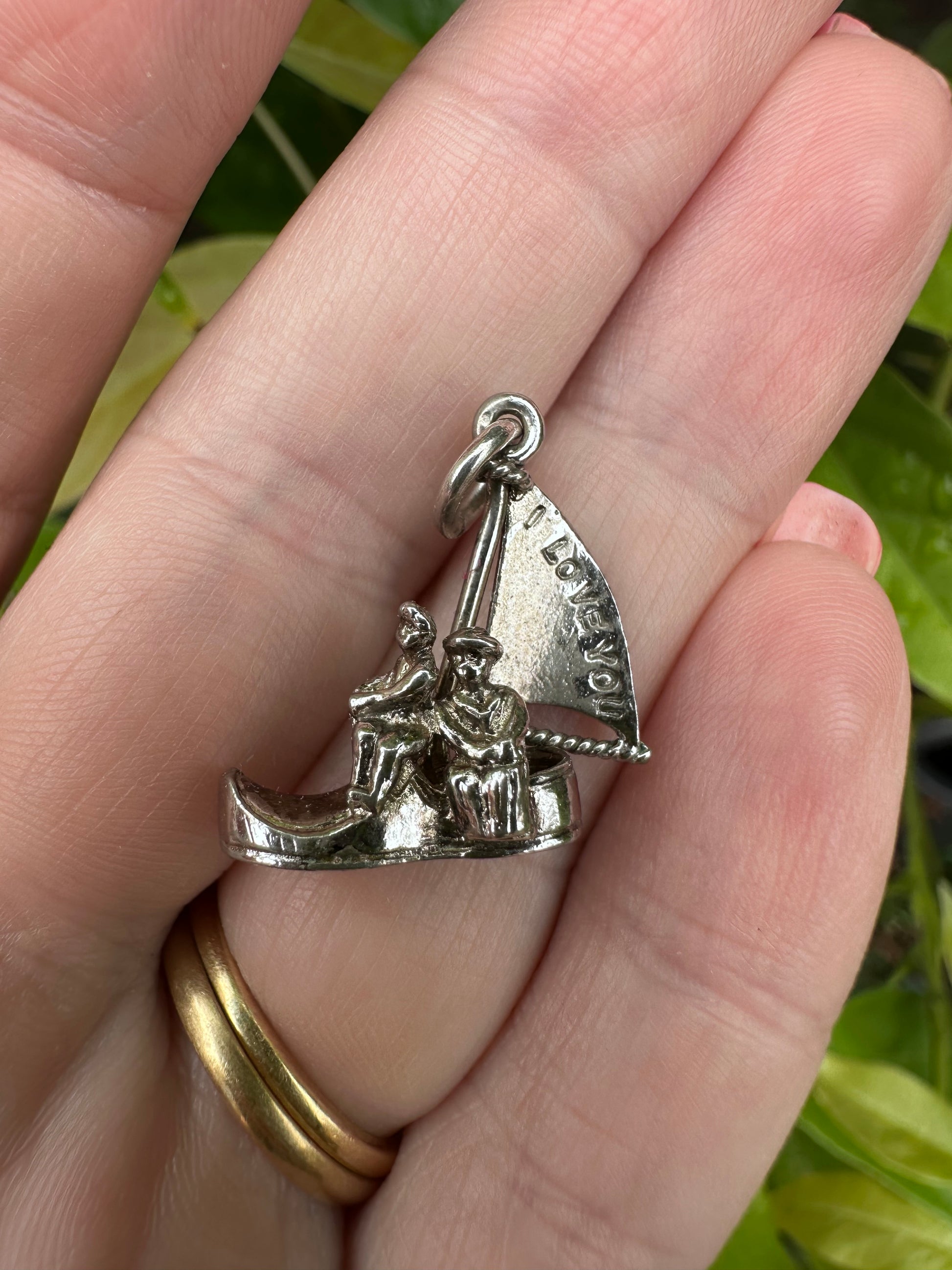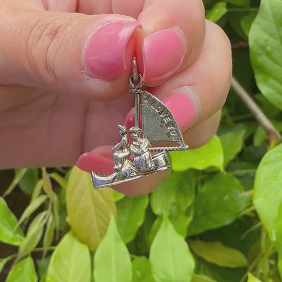 Silver Articulated ‘I Love You’ Boat charm, sail moves