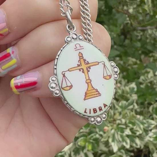 Sterling Silver Enamel Libra Pendant with silver curb chain