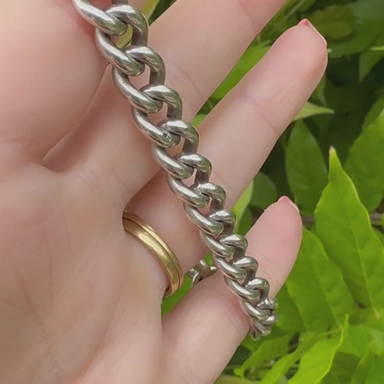 If you love your silver chunky and antique then this may be the bracelet for you. I love a graduated curb and the links on this are so chubby it’s divine. Every link has been stamped although very worn from years of love. When worn it’s like a comfy weighted blanket, it’ll look so good in a stack.