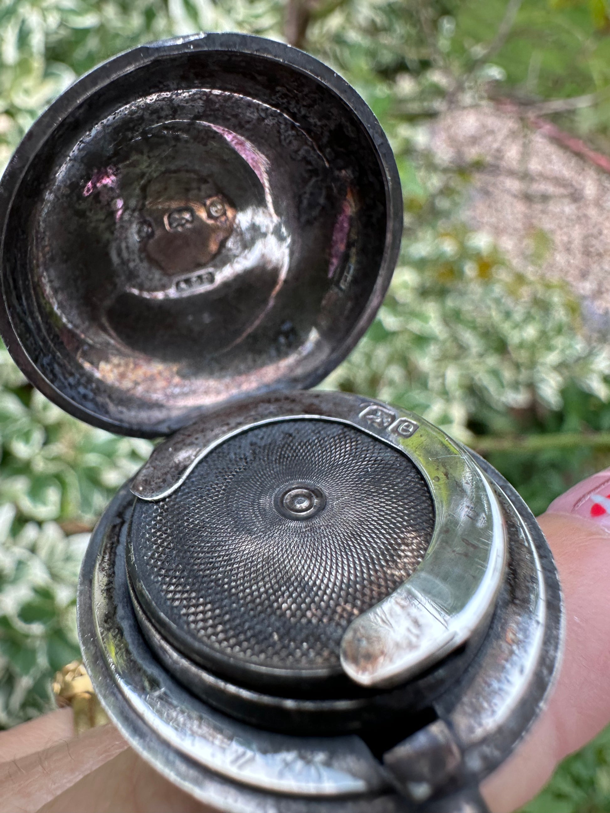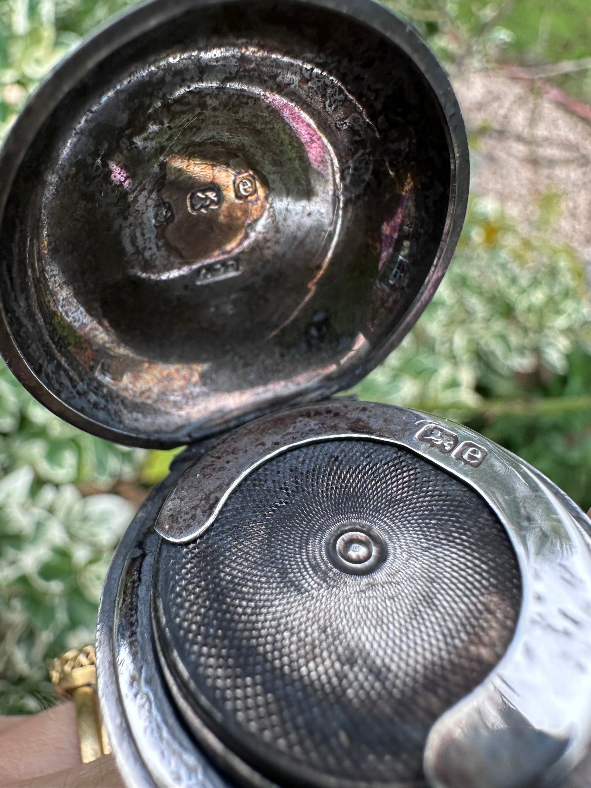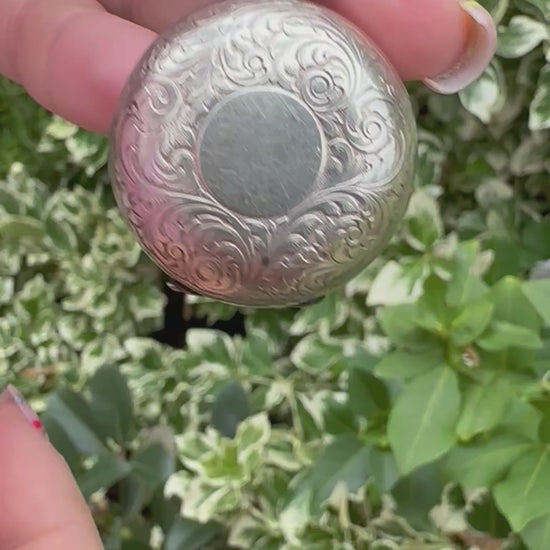 Statement fob. If you like oversized pendants then this absolutely wonderful fob is perfect. She is chubby, chunky and tactile. The engraved detailing is amazing ornate leaves. It opens to reveal a sovereign holder which was once commonly worn on Albert chains. It really needs to be given a new life as a pendant as it looks so good hung from a chain.