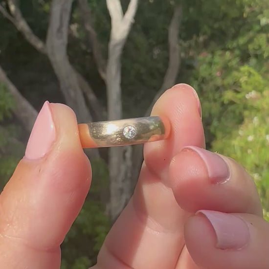 Add a little sparkle to you stack. This is such a lovely gold band, made from gorgeous 14ct yellow gold. It’s a great width perfect for stacking but wide enough to wear on her own. I also think it would be a lovely wedding band adding just that little touch of sparkle. She’ll become a favourite in your jewellery collection.