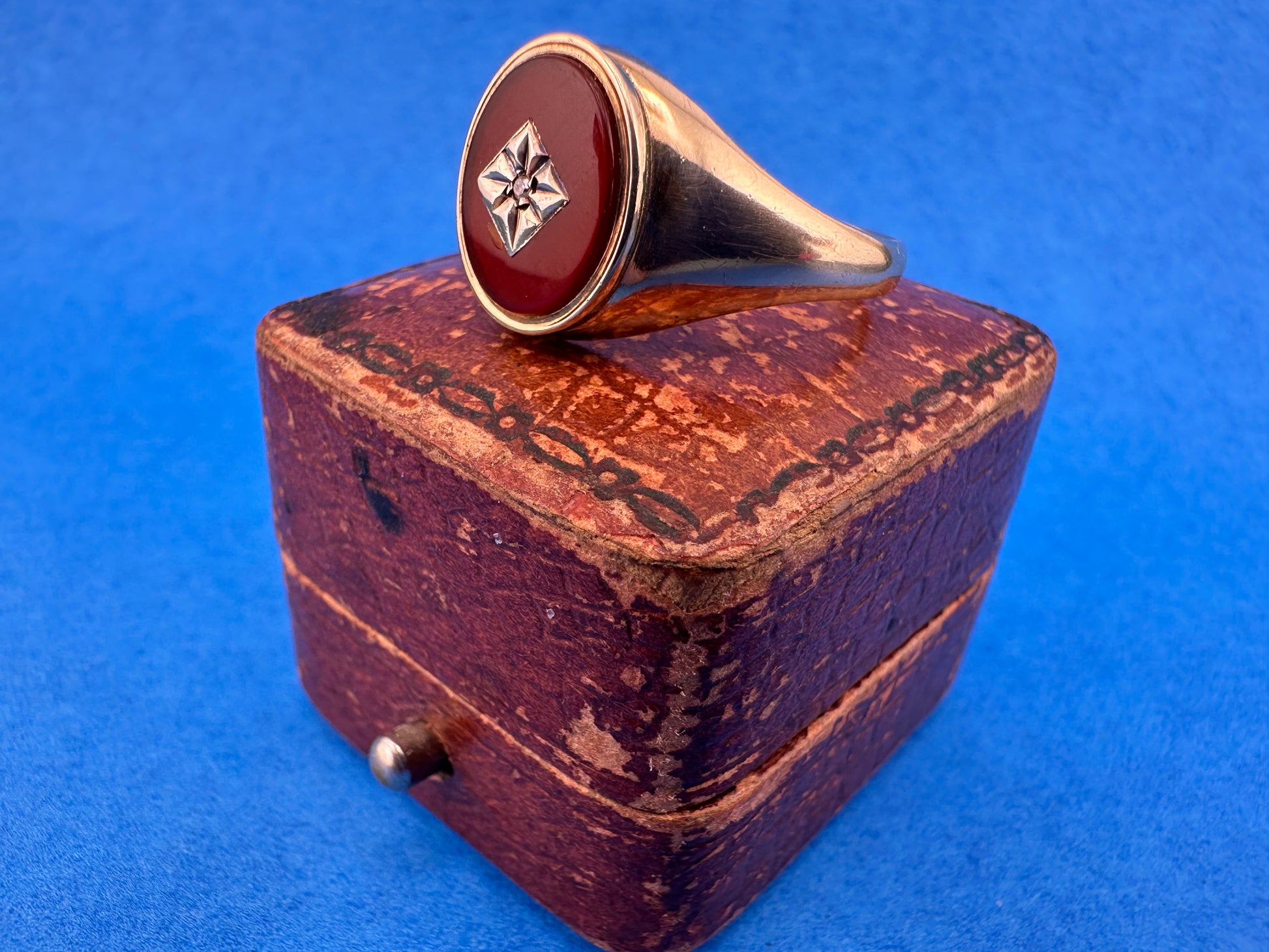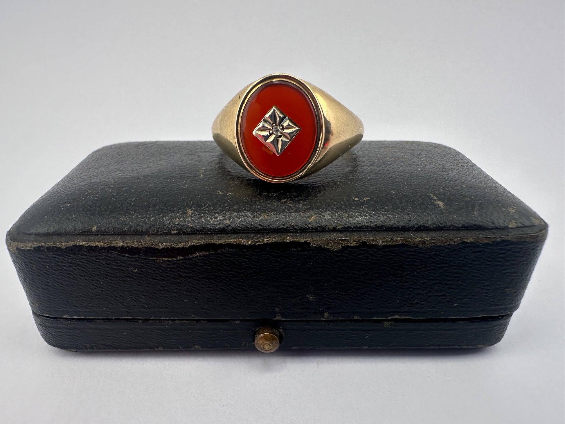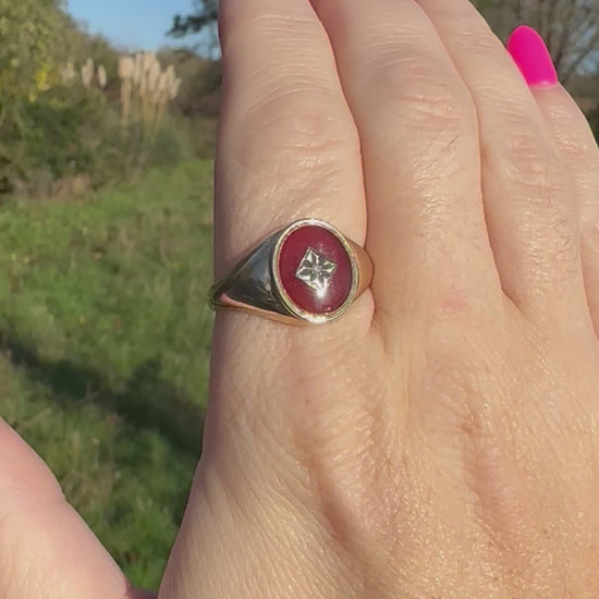 Vintage 9ct Carnelian & Star Set Diamond Signet ring