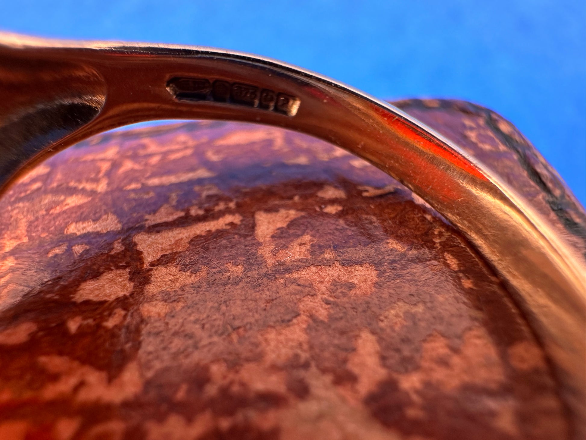 Hallmarks- NB Makers mark, Crown 375, Birmingham assay mark, P=1989