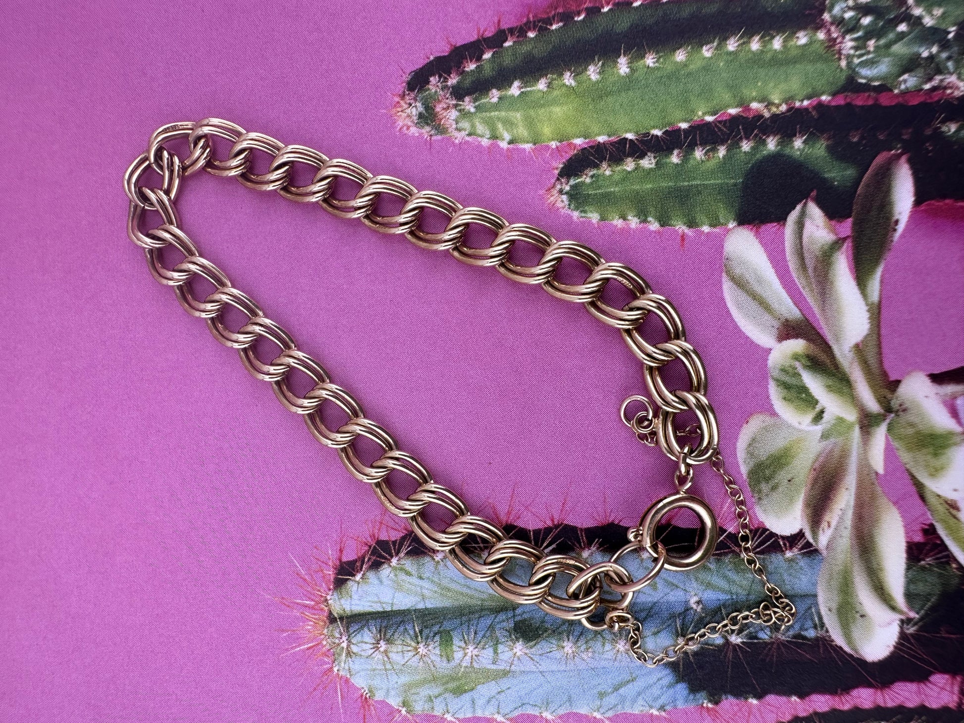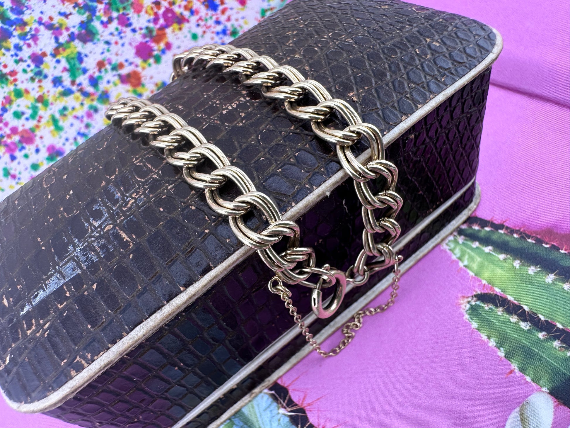 Classic curb bracelet. A curb bracelet is such a timeless piece to add to your wrist stack. Love that this one is double curb adding a little more interest. It has a large spring ring clasp which is fabulous for adding a charm to your wrist stack. It still has the safety chain which is great. This would also be great a charm bracelet as it’s super sturdy.