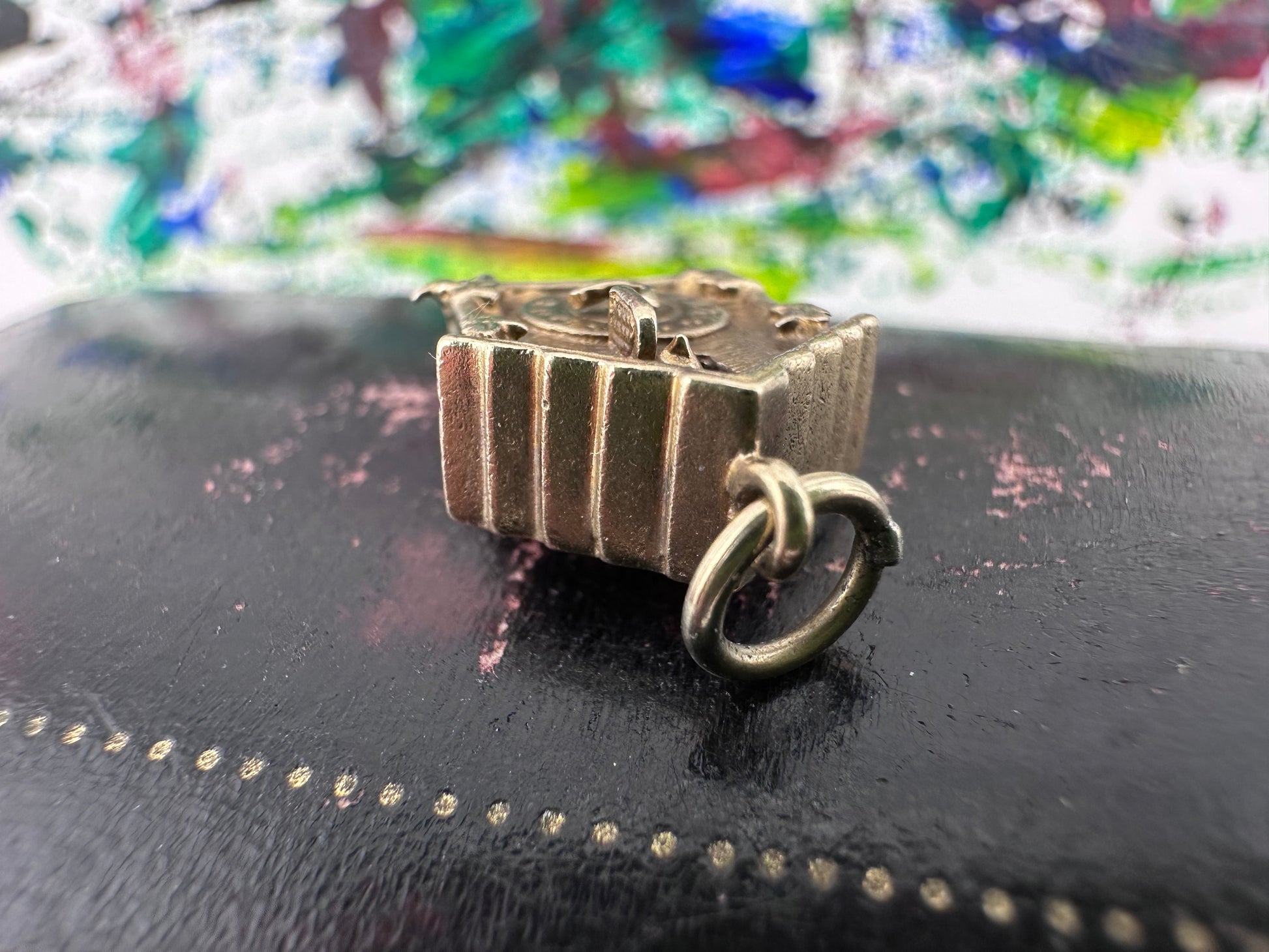 This charm is in good condition, there is a some small holes at the back where the bottom piece of gold meets the back, it’s still very secure and not an issue for wear. It has been cleaned and polished.
