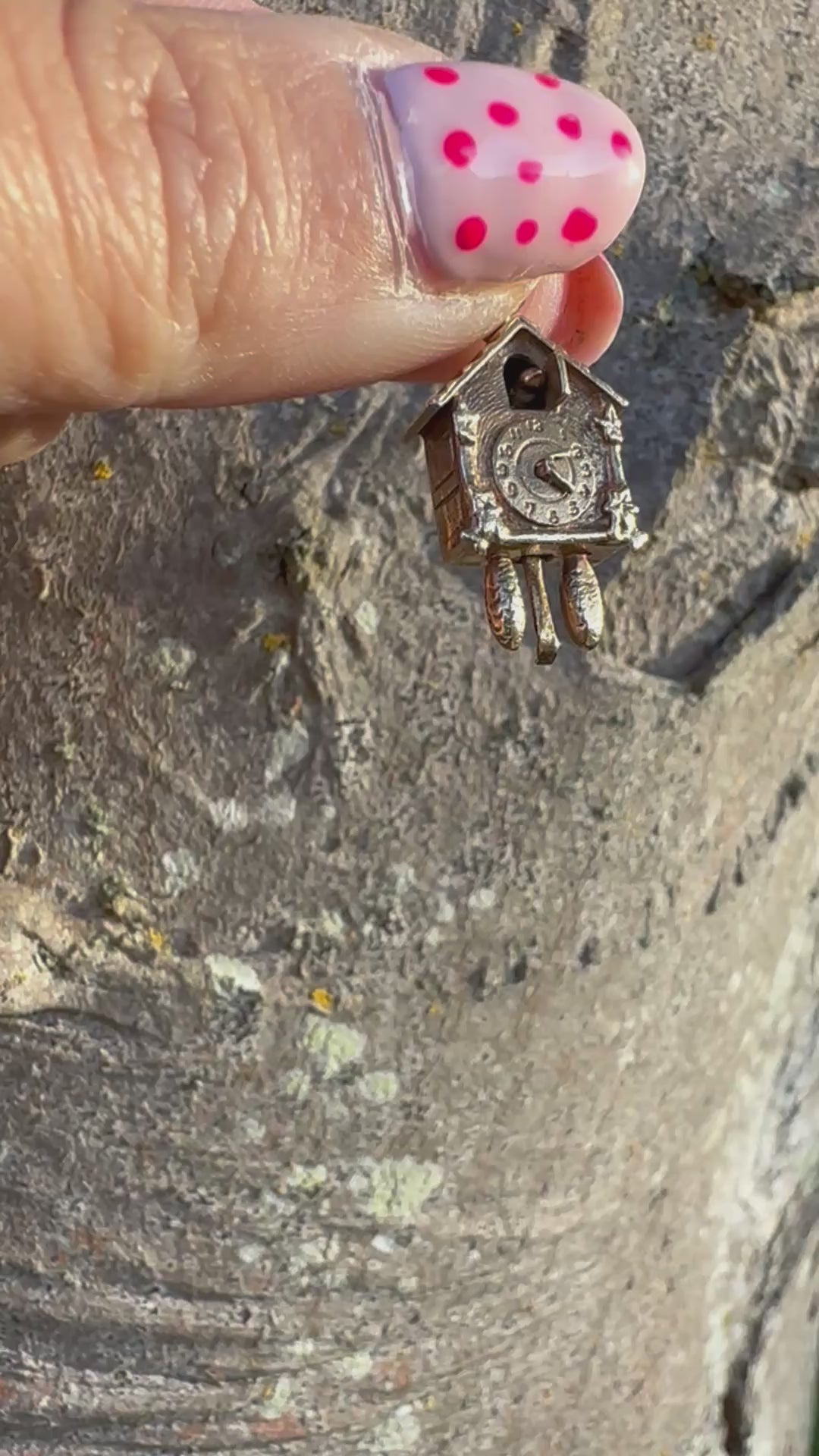 Such a fun articulated charm! If you have a love of articulated charms this maybe the perfect charm for your collection. It has 2 articulations, a leaver that moves the little cuckoo in and out of the clock. It also has a leaver that spins moving the hands of the clock. The detailing to this charm is gorgeous my personal favourite part are the little ivy leaves on the front of the clock. It’s a great sized piece giving you good presence in a stack.