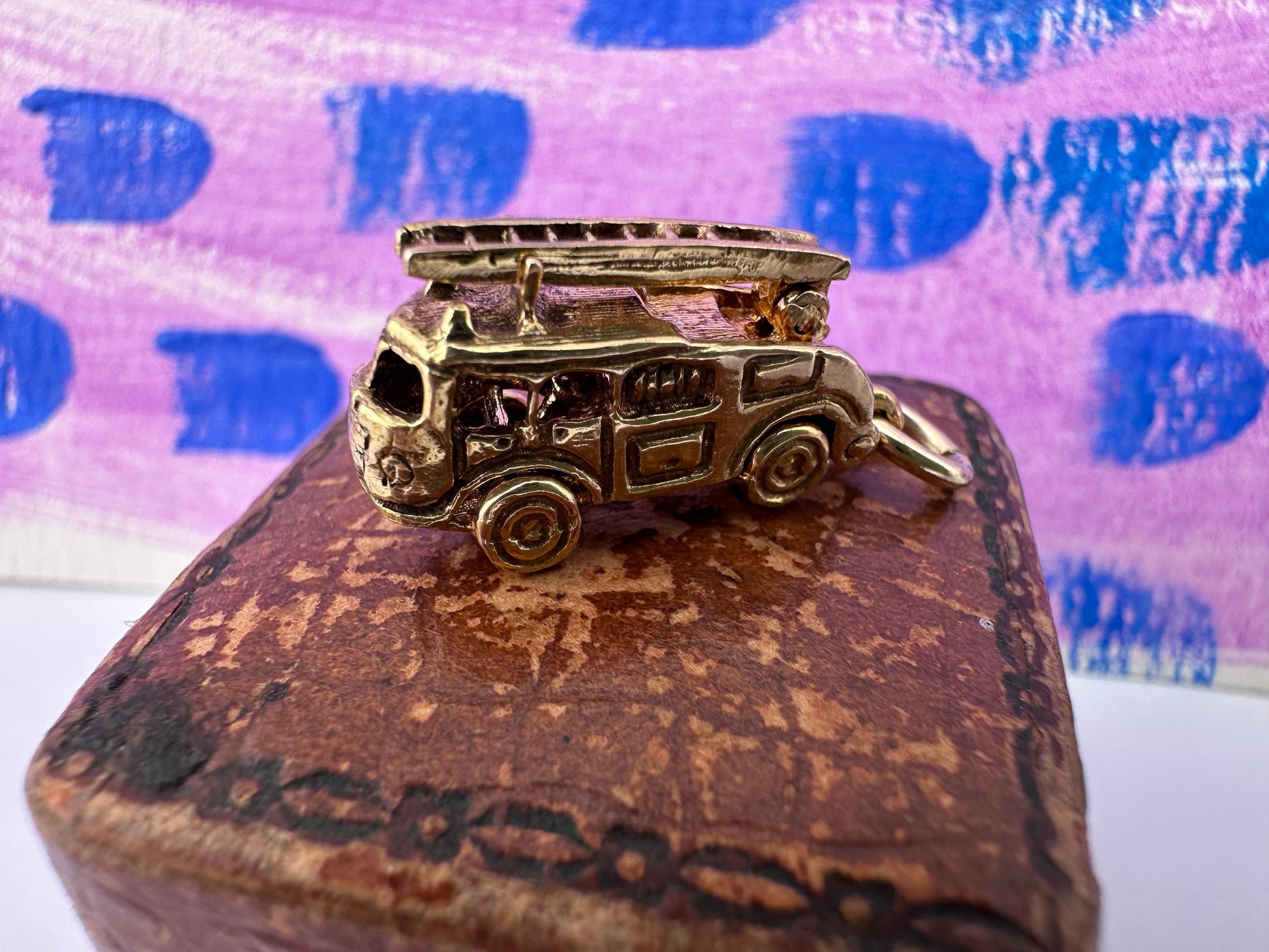 Vintage 9ct Gold Articulated Fire Engine Charm