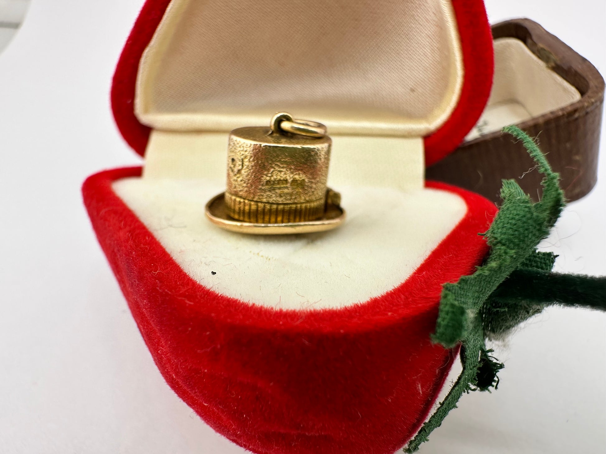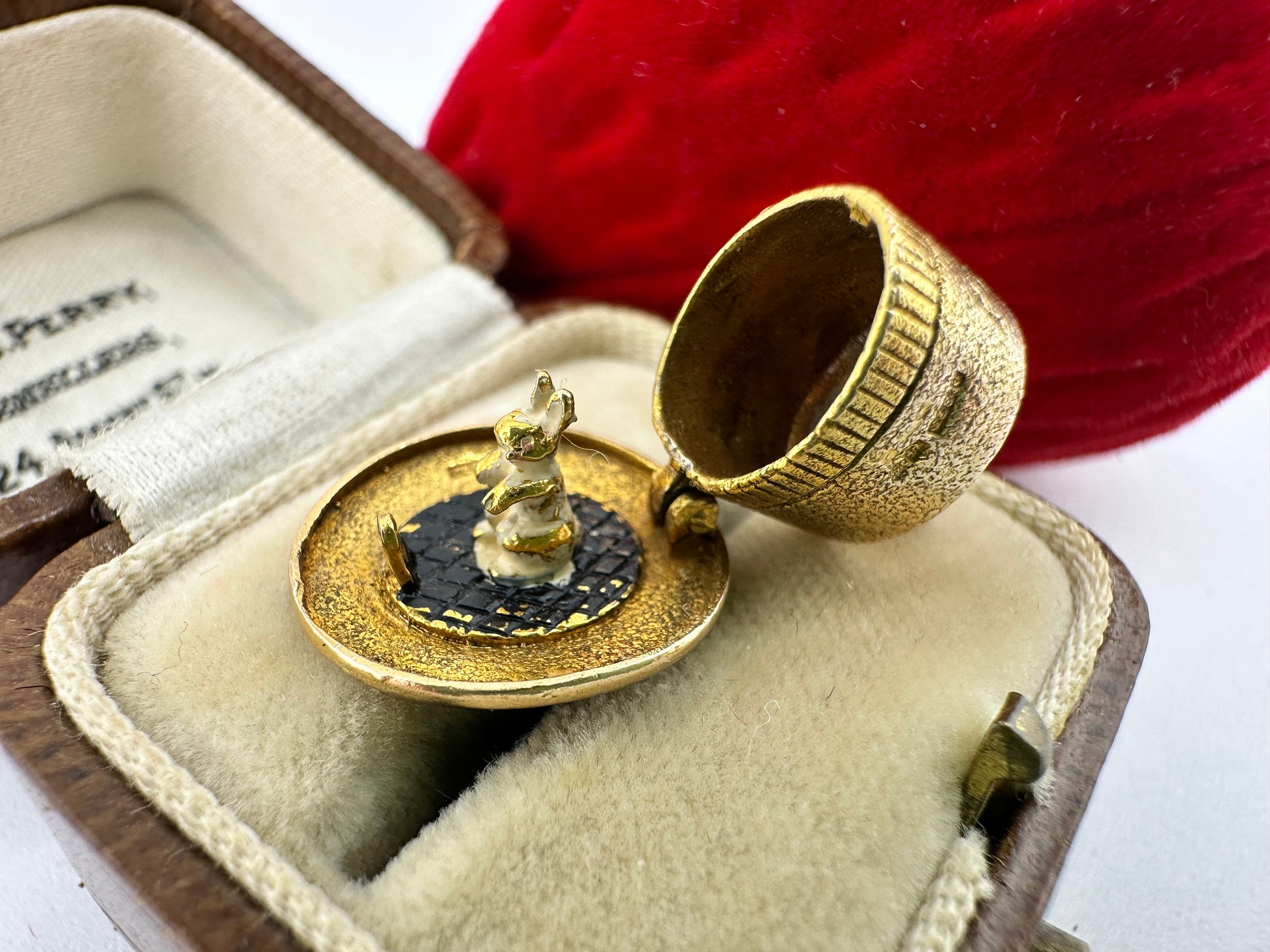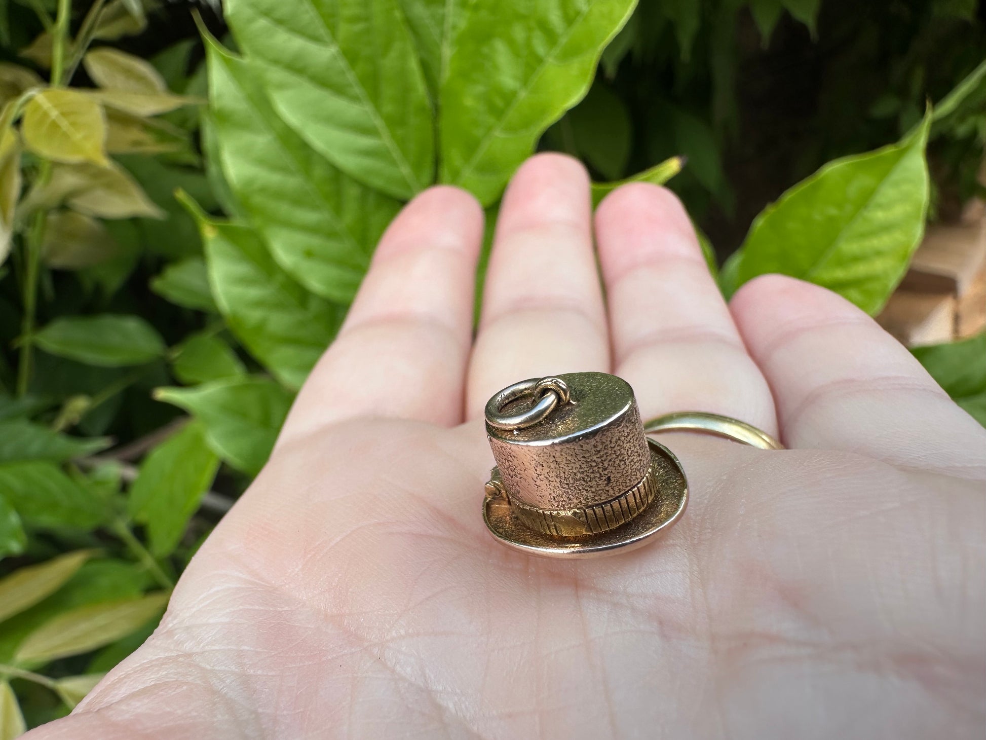 Vintage 9ct Gold Articulated Magicians hat charm, with enamel rabbit